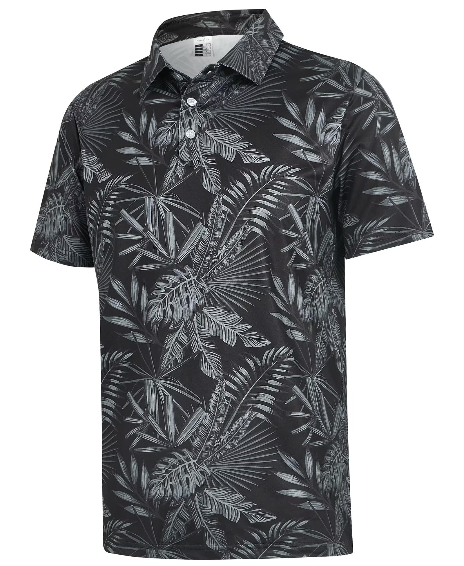 ELETOP Men's Golf Polo Shirts Short Sleeve Moisture Wicking Hawaiian Tropical Polos Performance Golf Shirts for Men Dry Fit