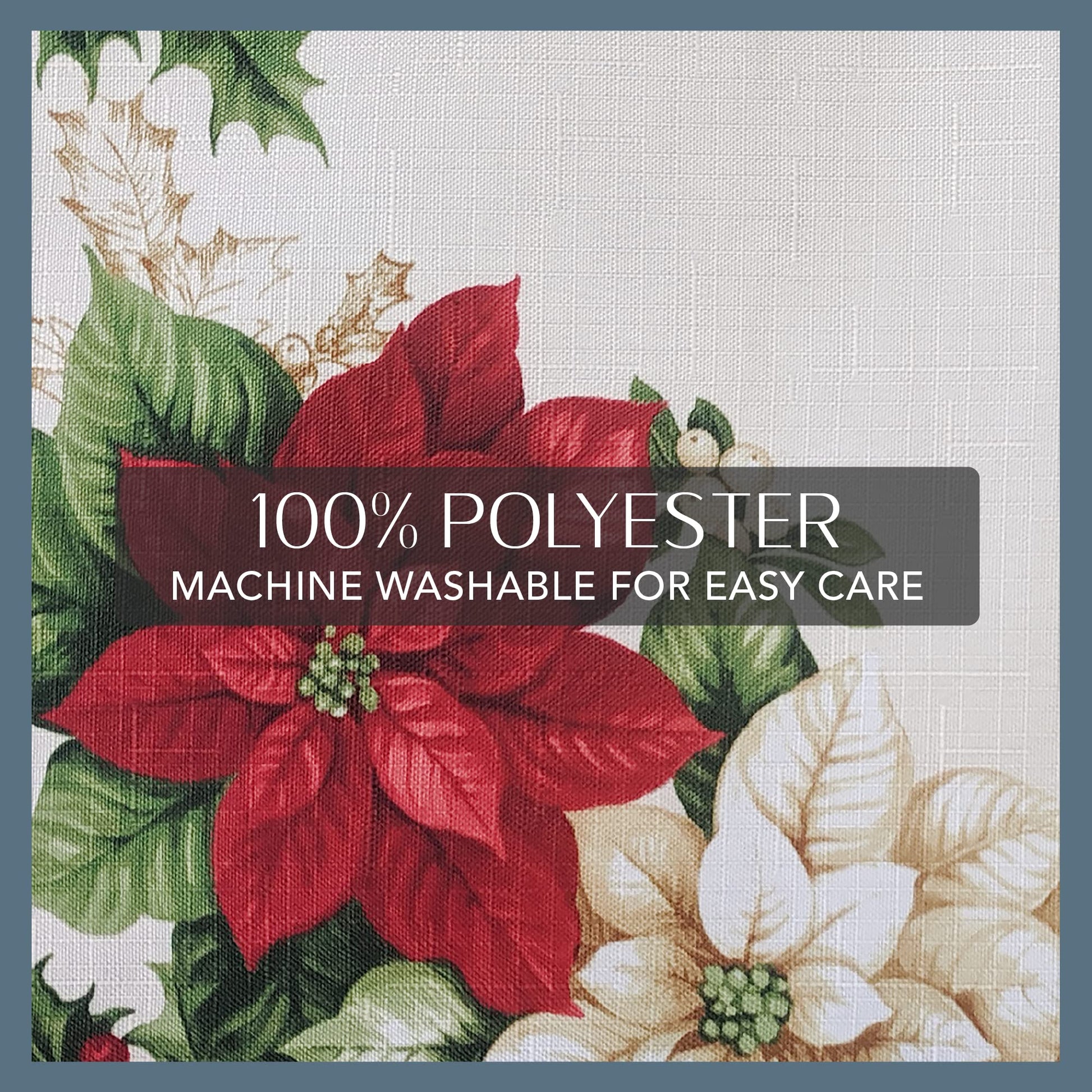- HIGH-QUALITY TABLE LINEN: Made from durable 100% polyester, this festive tablecloth features a delightful poinsettia pattern with Christmas colors, including red, green, and cream, with a red double-border design.