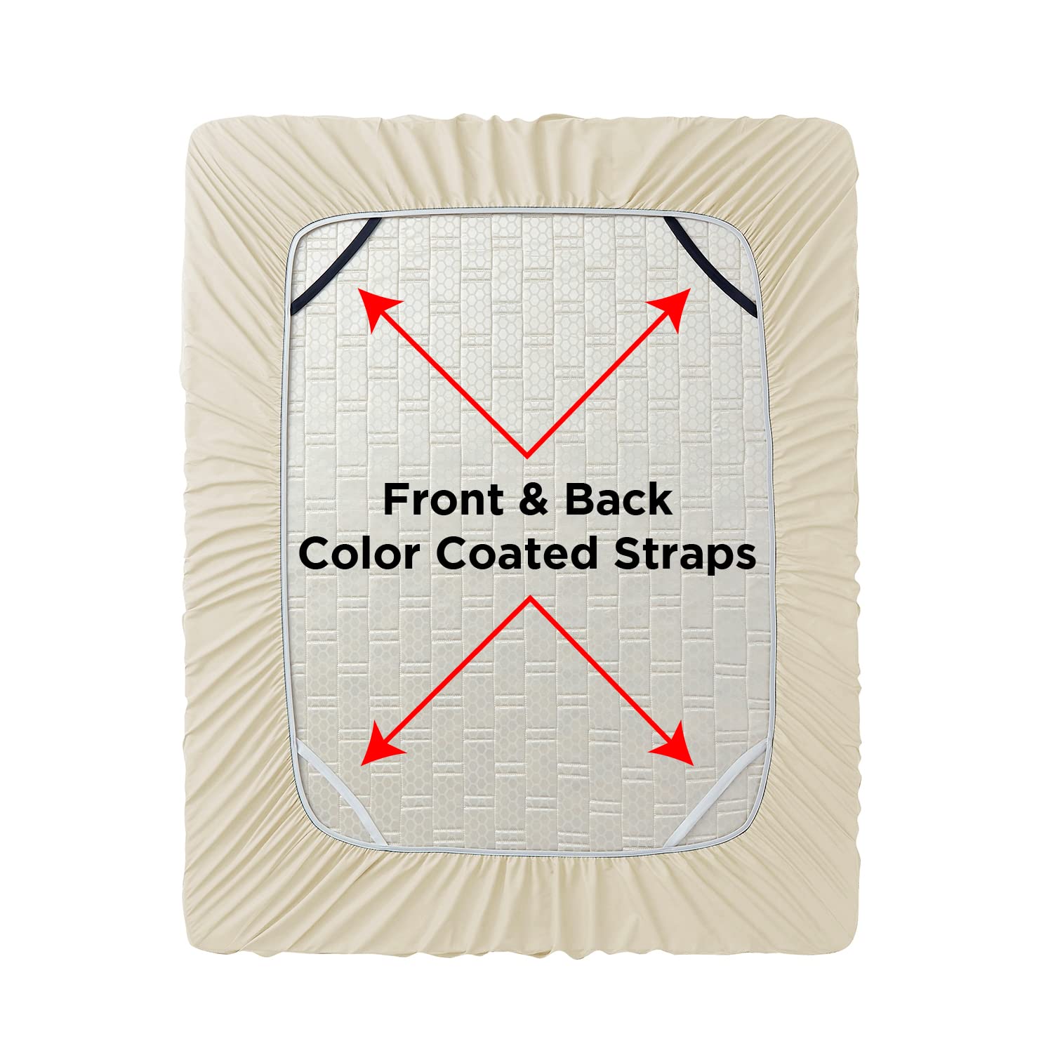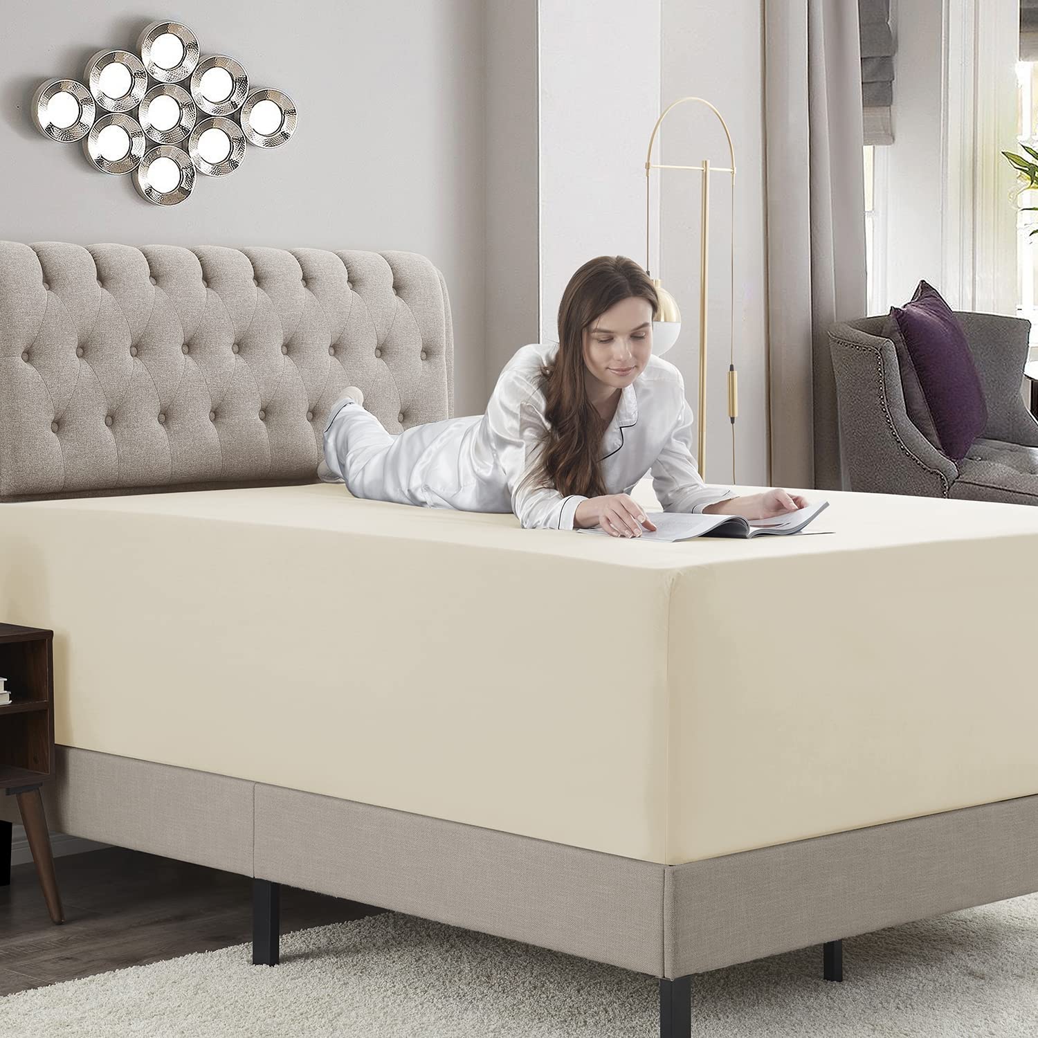 Empyrean Beige Cream Extra Deep Pocket King Fitted Sheet Only, Hotel Luxury King Size Fitted Sheets Easily Fits 18 to 24 Inch Mattress, Super Soft, Wrinkle-Free Bottom Sheets with Corner Straps