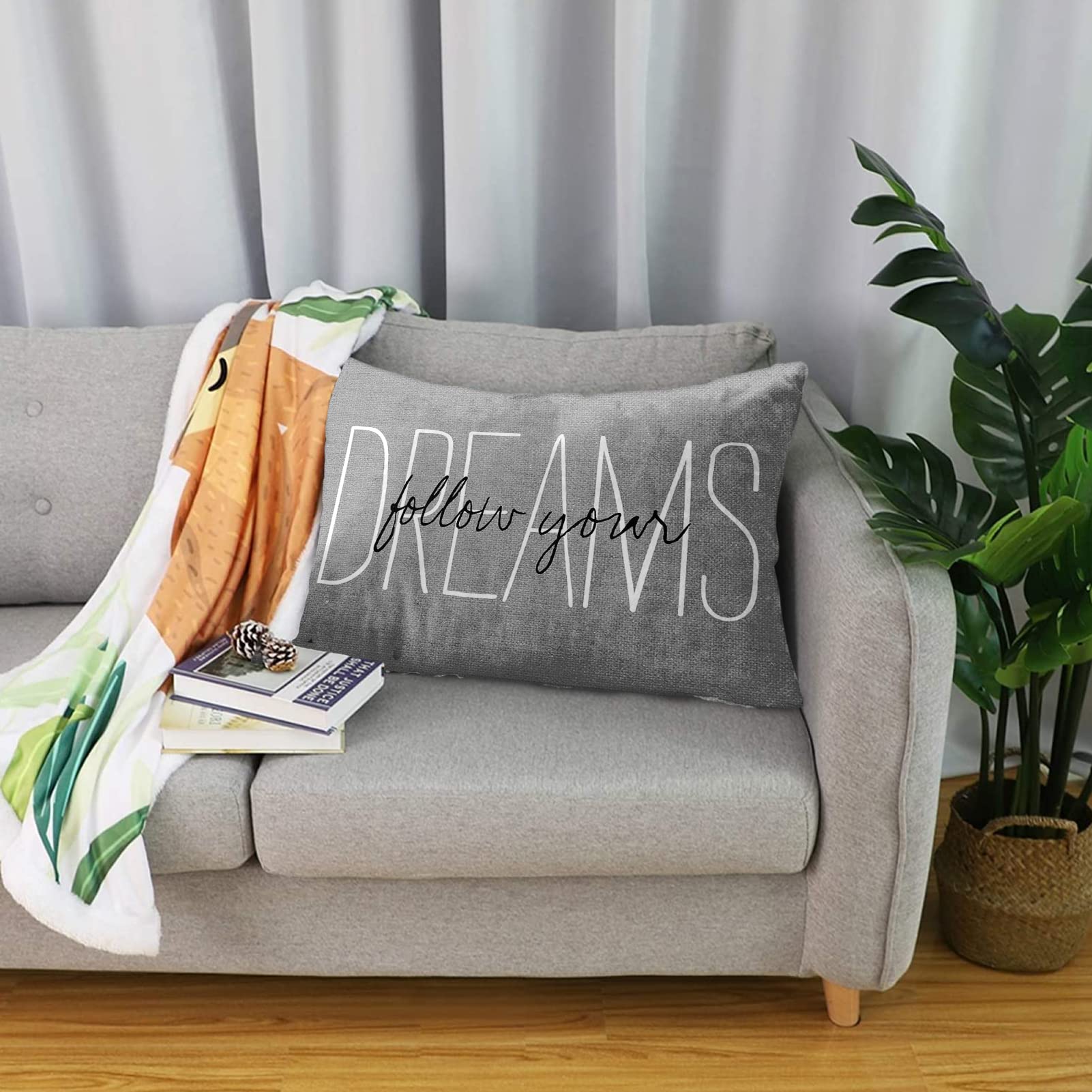 Emvency Throw Pillow Cover Rustic Gray Follow Your Dreams Decorative Pillow Case Monogram Home Bed Decor Rectangle Queen Size 20x30 Inch Cushion Pillowcase