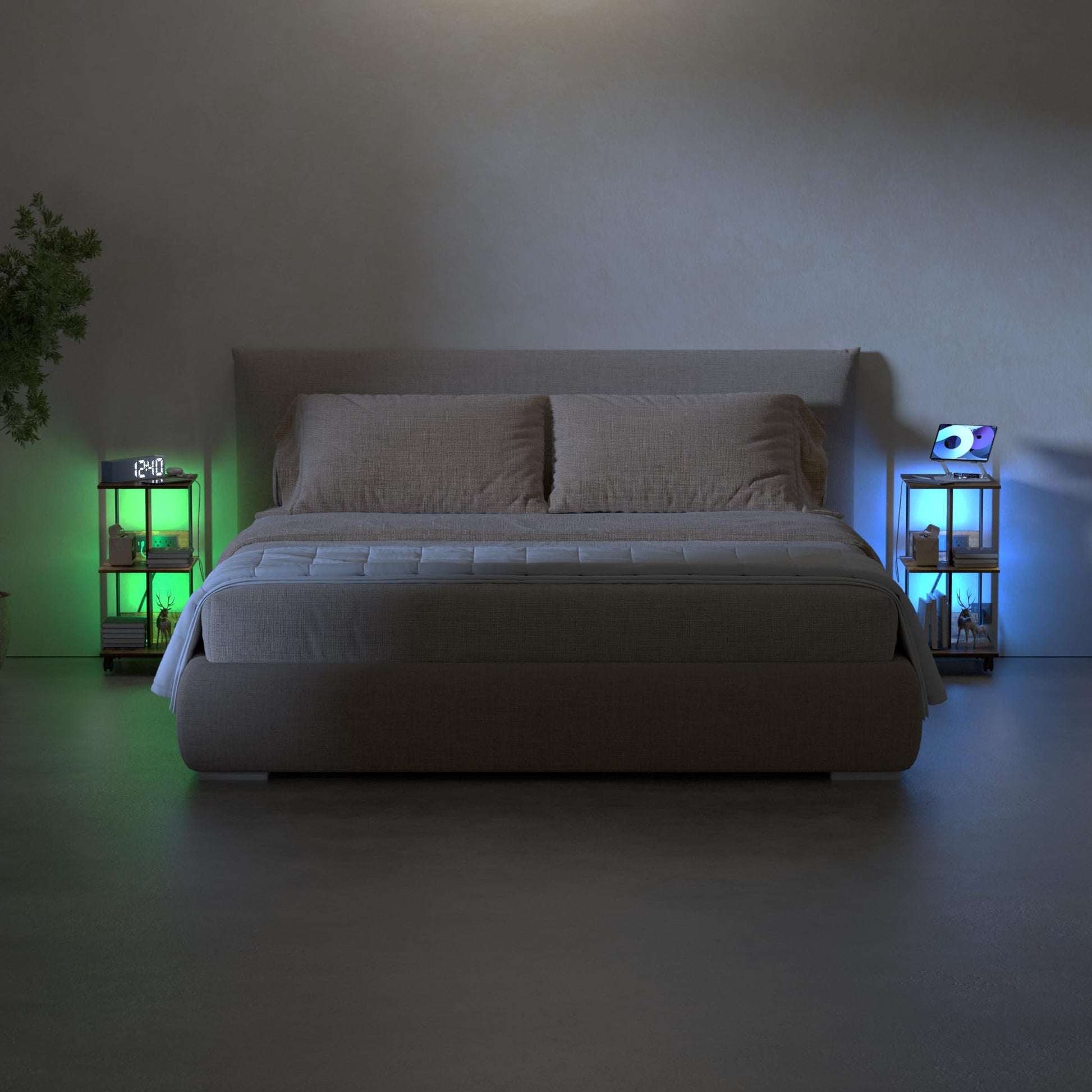 - Multifunctional Nightstand with LED Lights: Enjoy a unique ambiance with built-in LED lighting that offers 16 vibrant colors, 4 dynamic modes, and 5 brightness levels. This feature, combined with a memory function, allows you to customize the atmosphere for any occasion.