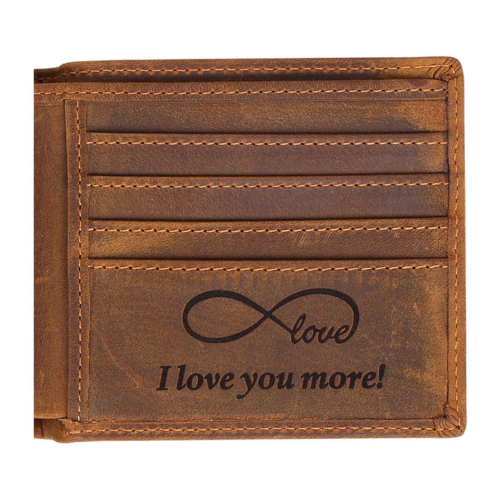 ----------------Perfect Gift For Your Husband or Boyfriend---------------- Personalized engraved leather wallet features the thoughtful words. It makes the most special gift for him who can take