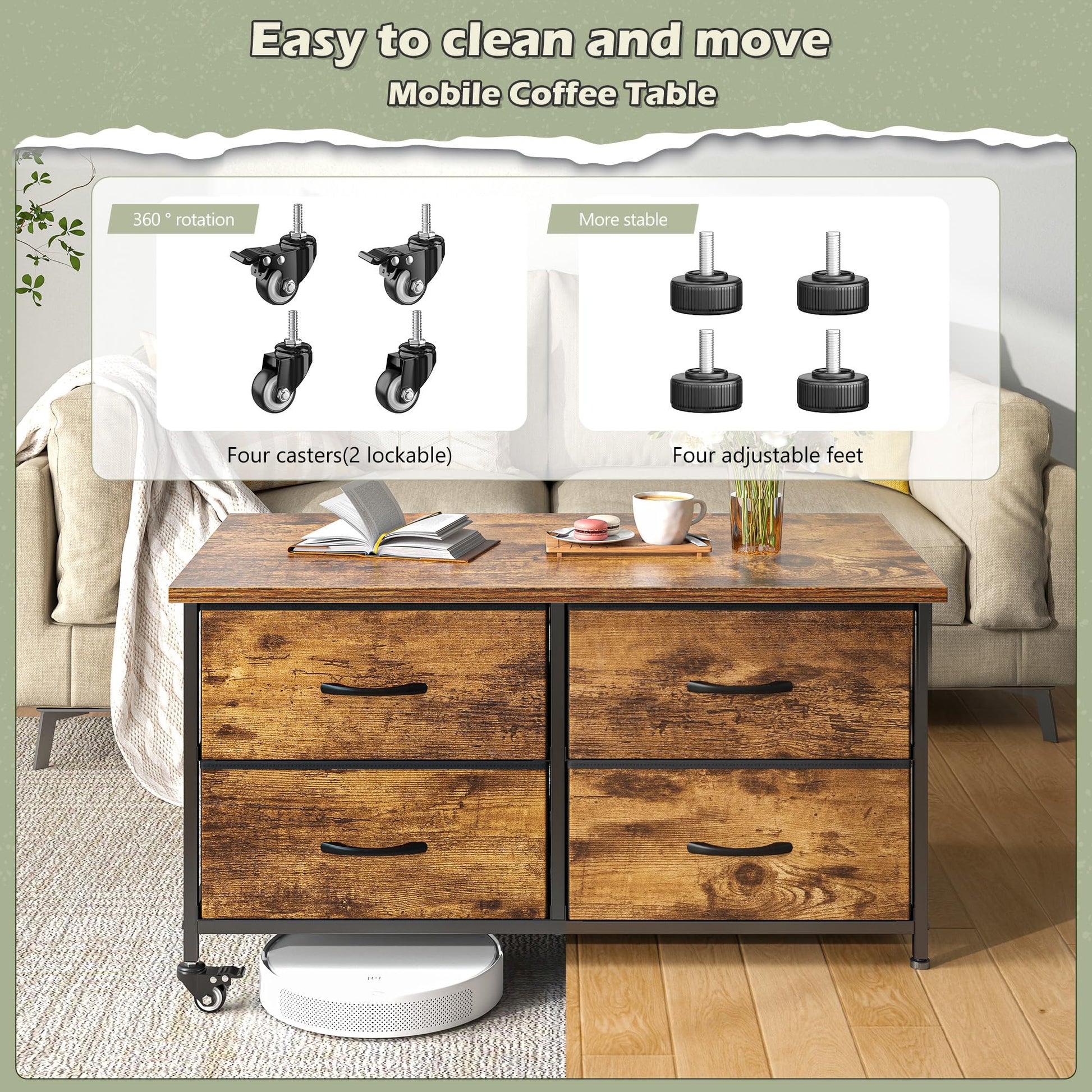 - 【Sturdy and Durable】The coffee table panel is made of a high-grade particle board and sturdy metal frame, while the wood tabletop can hold up to 110 lbs. Its adjustable feet with pulley wheels enhance stability and practicality, making it easy to move and adjust. This design ensures the small coffee table is suitable for long-term use