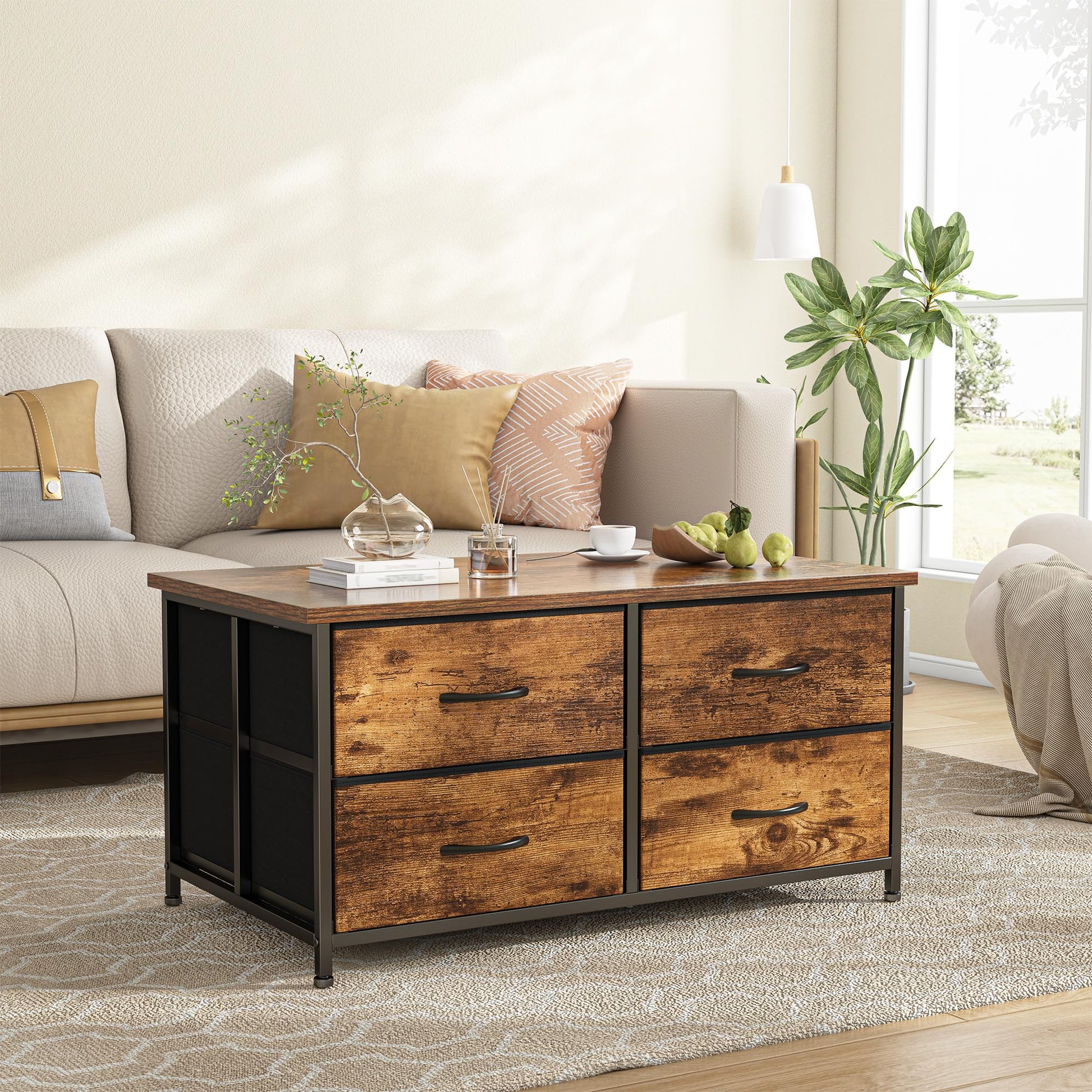 EnHomee Coffee Table with Storage, Modern Coffee Tables for Living Room, Black Center Table with Fabric Drawer and Large Hidden Space for Bedroom, Home, Office