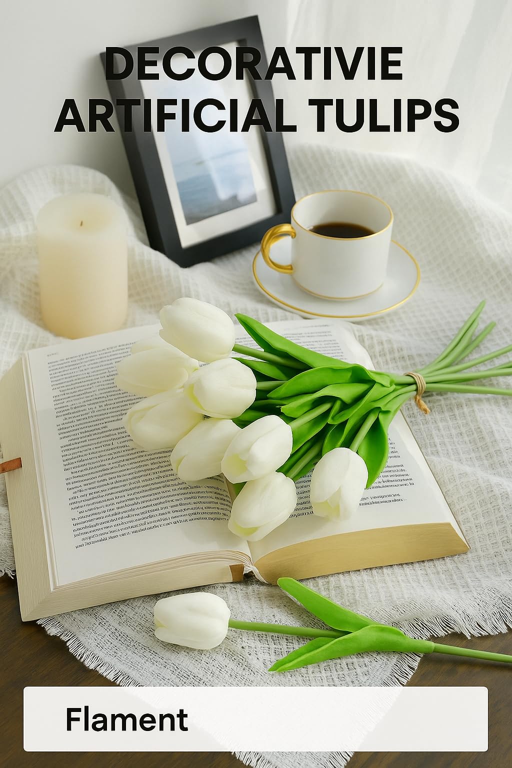 Enirunly 20pcs White Artificial Tulip Silk Fake Flowers 13.5" for Spring Easter Mother's Day Wedding Decor – Bulk Home Kitchen Office Party Supplies, Set