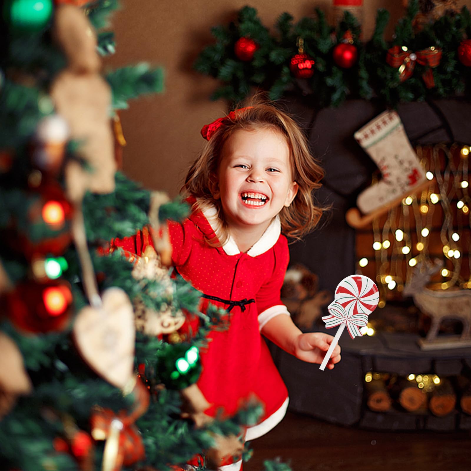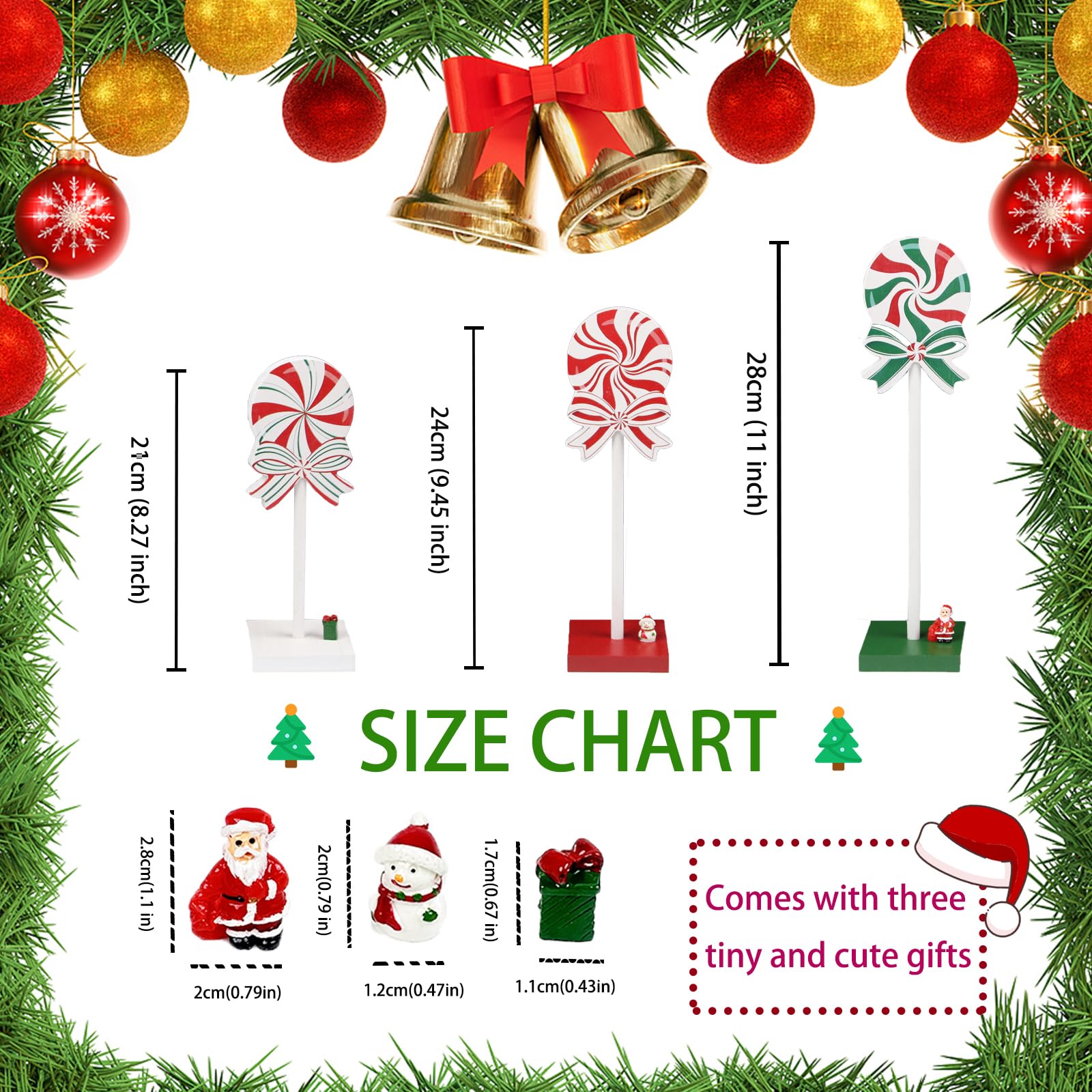 - Package Included: The package contains three different patterns and sizes of Christmas candy wood table decoration, each equipped with a wooden stick, a standing base. We still provide three tiny base décor for each package, cute and creating festive atmosphere.