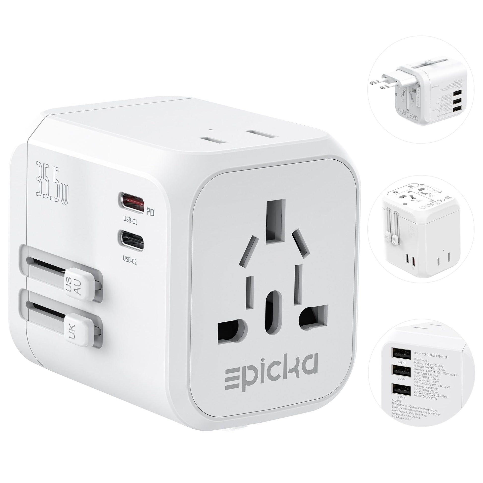 EPICKA 35W Universal Travel Adapter with 2 AC Outlet, European Travel Plug Adapter with PD Fast Charging, 6-Port (2 AC/2 USB-C/3 USB-A) International Power Adapter - Travel Essentials (TA-205, Black)