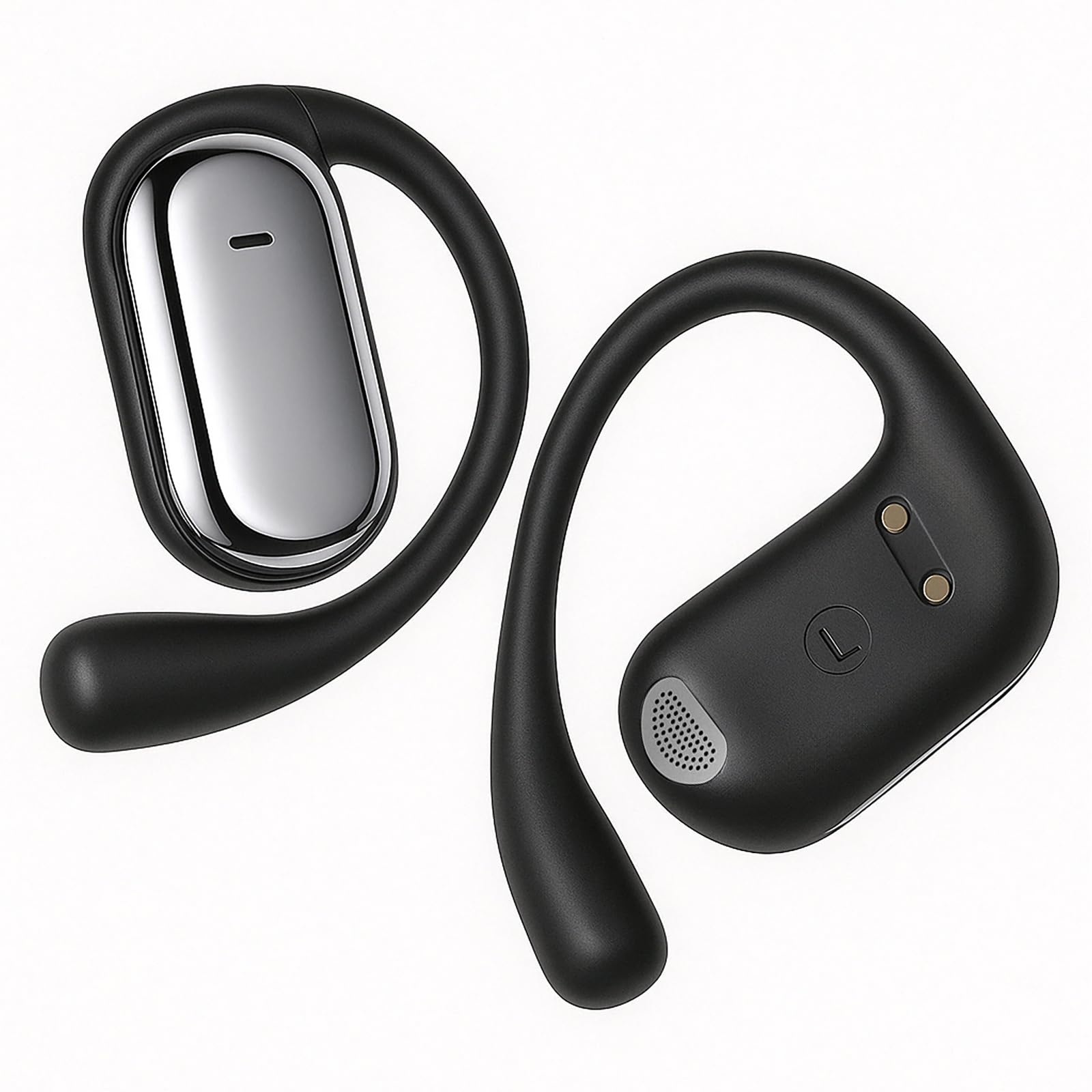 EUQQ Ultra Open-Ear-Headphones Wireless Bluetooth - Bone Conduction Earbuds with Open Air Ergonomic Fit, Waterproof Running Earphones, Secure Over-Ear Buds Ideal for Sport, Fitness, Carbon Black