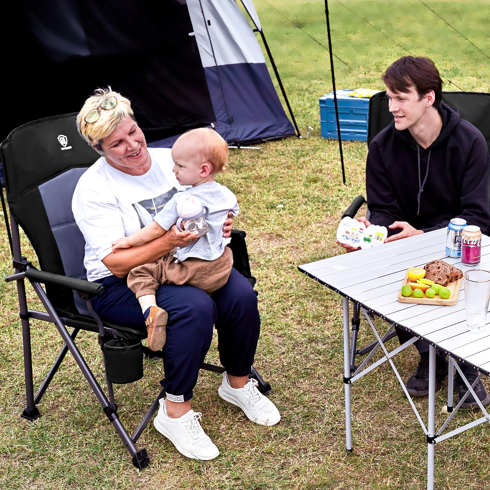 - 【HEAVY DUTY COMFORT】: Our xl camping chair is made with a heavy duty steel frame and can support up to 500lbs. Equipped with hard armrests for getting up easily.
