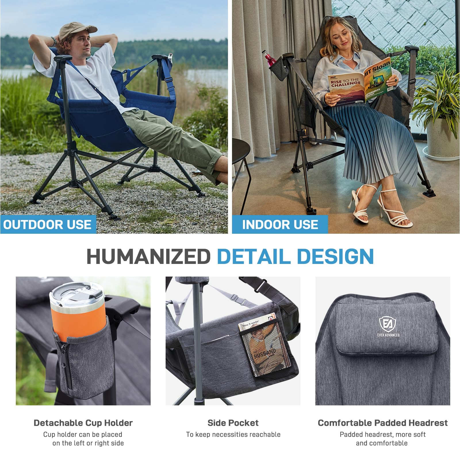 - 【Multi Purpose Uses】: EVER ADVANCED rocker camping chairs for adults that is built for anywhere: Enjoy your freely swing relaxing time whether indoor or outdoor.
