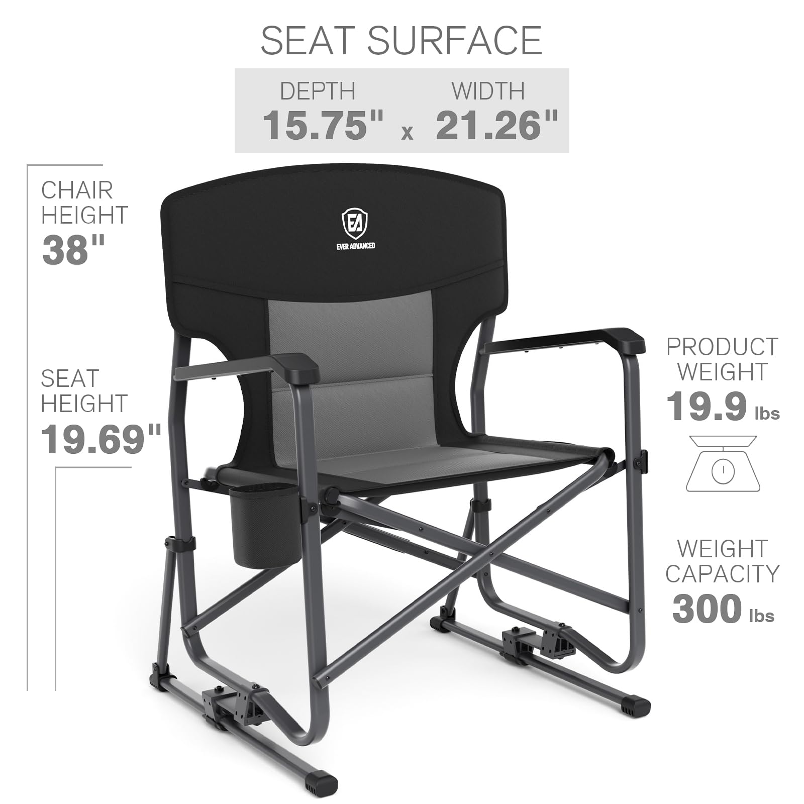 - 【Portable & Easy Storage】Our rocking chair weights 19.9 lbs, yet it offers a generous load-bearing capacity of up to 300 lbs, ensuring safe and secure usage. The hard armrests help you get out of the chair easily. When collapsed, the chair measures 35 x 25.2 x 7.1 inches, making it compact for easy storage and transportation.