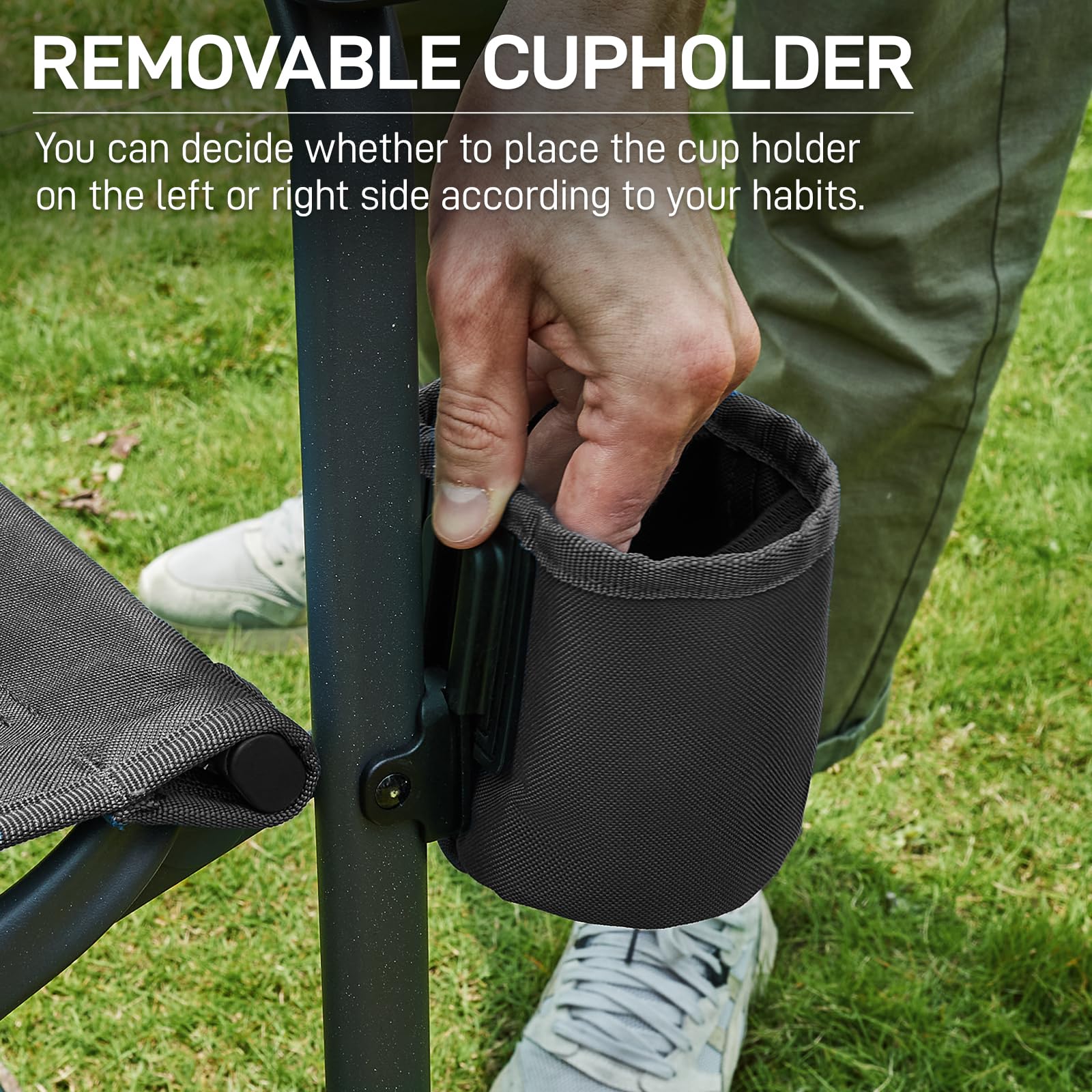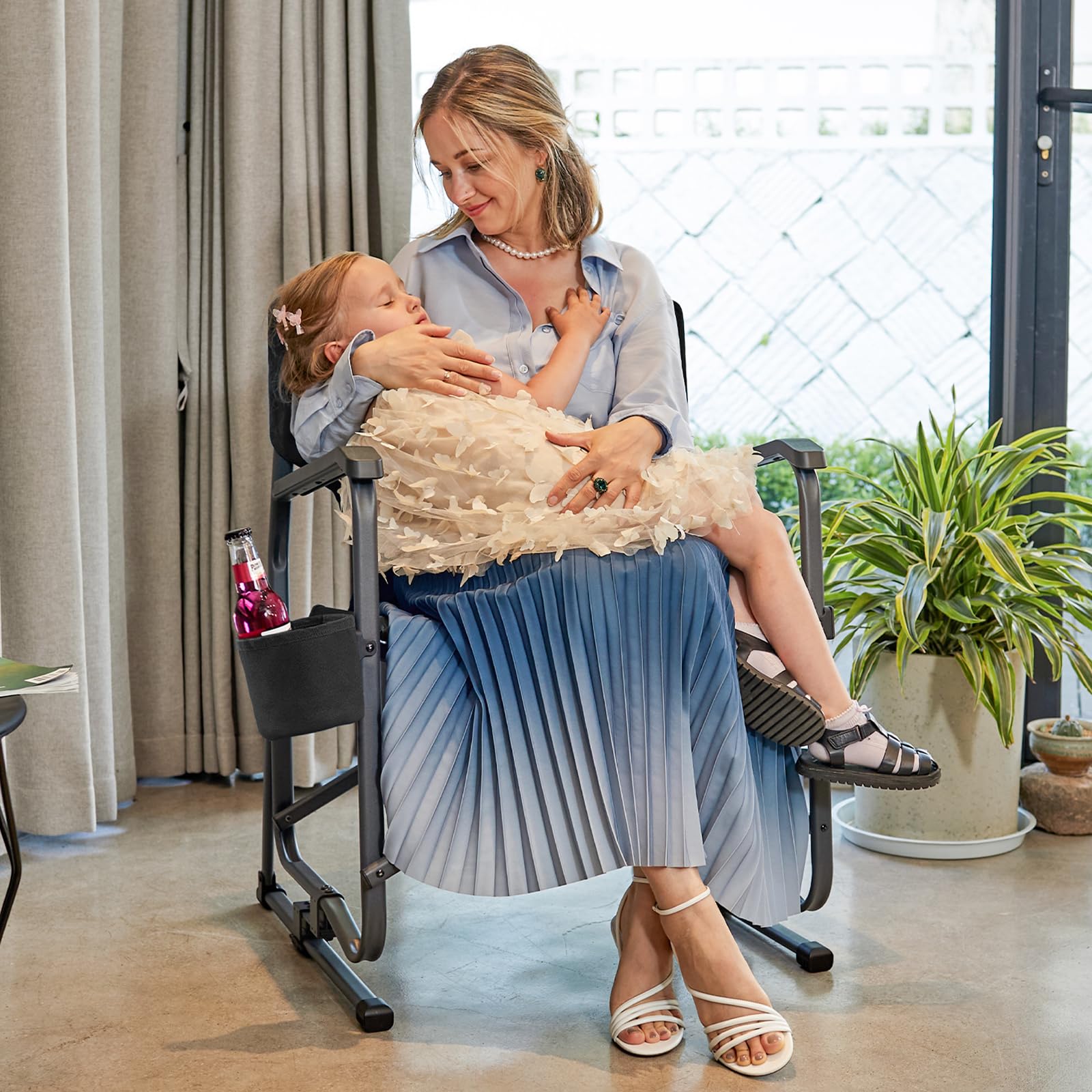 - 【Fine Design and Functionality】Our brand prides on meticulous craftsmanship, evident in every aspect of our rocking chair's design. 400D polyester fabric of the chair strikes the perfect balance between durability and comfort. The adjustable cup holder allows placement either on the left or right side according to individual preference.
