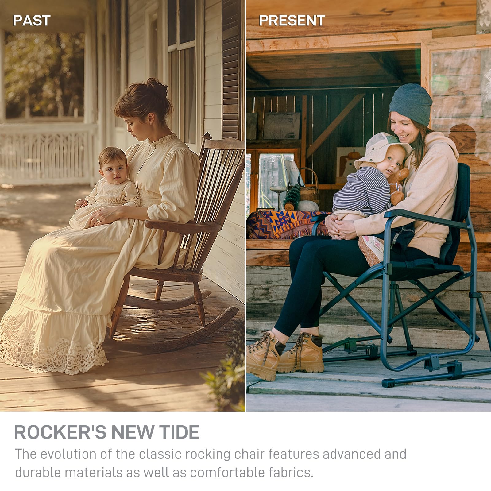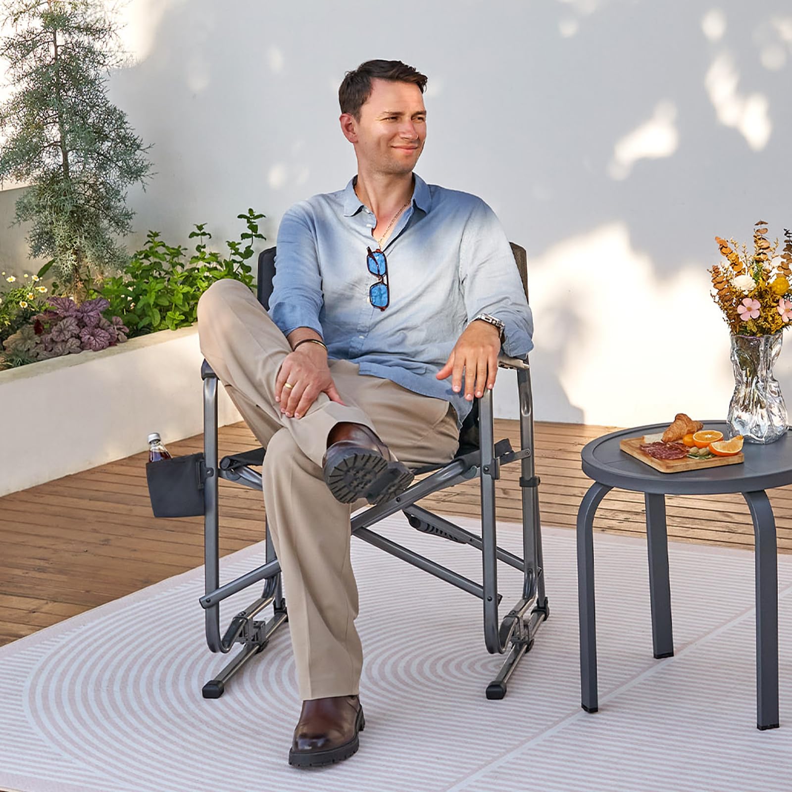- 【Share Joy Everywhere】With its wide range of applications, our folding rocking chair transforms effortlessly across different environments. This rocking recliner chair is ideal for camping, courtyards, balconies, or homes, you can cherish unforgettable outdoor experiences and create lasting bonds with your family and friends.