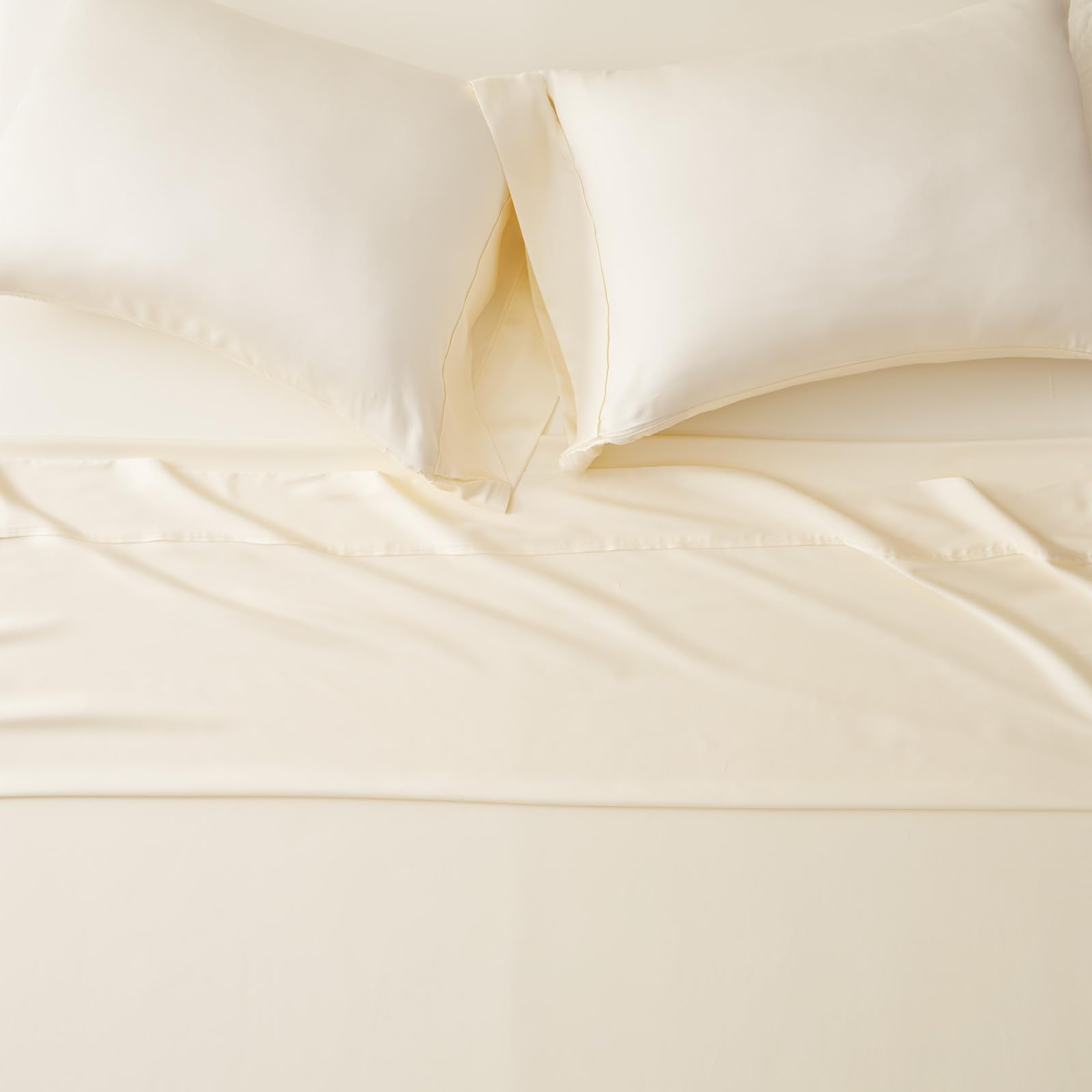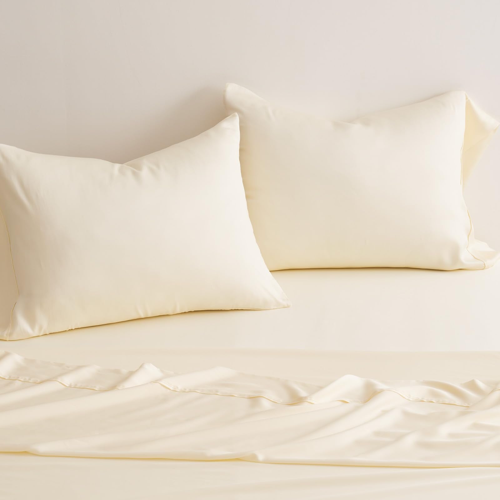 EVERGRACE Tencel Sheet Set Queen Size 4 Pieces,Soft Cooling Bed Sheets for Hot Sleepers, Eucalyptus Lyocell Luxury Breathable Bedding Set, 1 Fitted Sheet, 1 Flat Sheet, 2 Shams, Cream