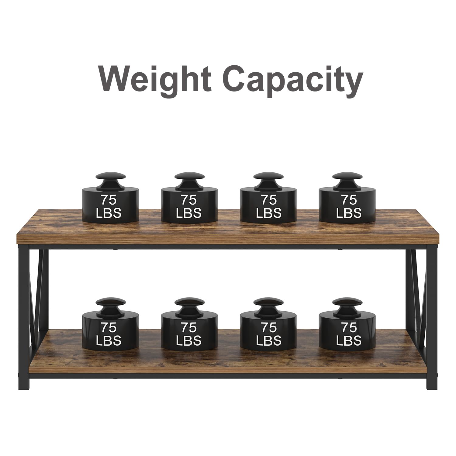EXCEFUR Modern Coffee Table, Rustic Wood and Metal Living Room Table with Storage Shelf, Industrial Rectangle Center Table, 47 Inch Brown