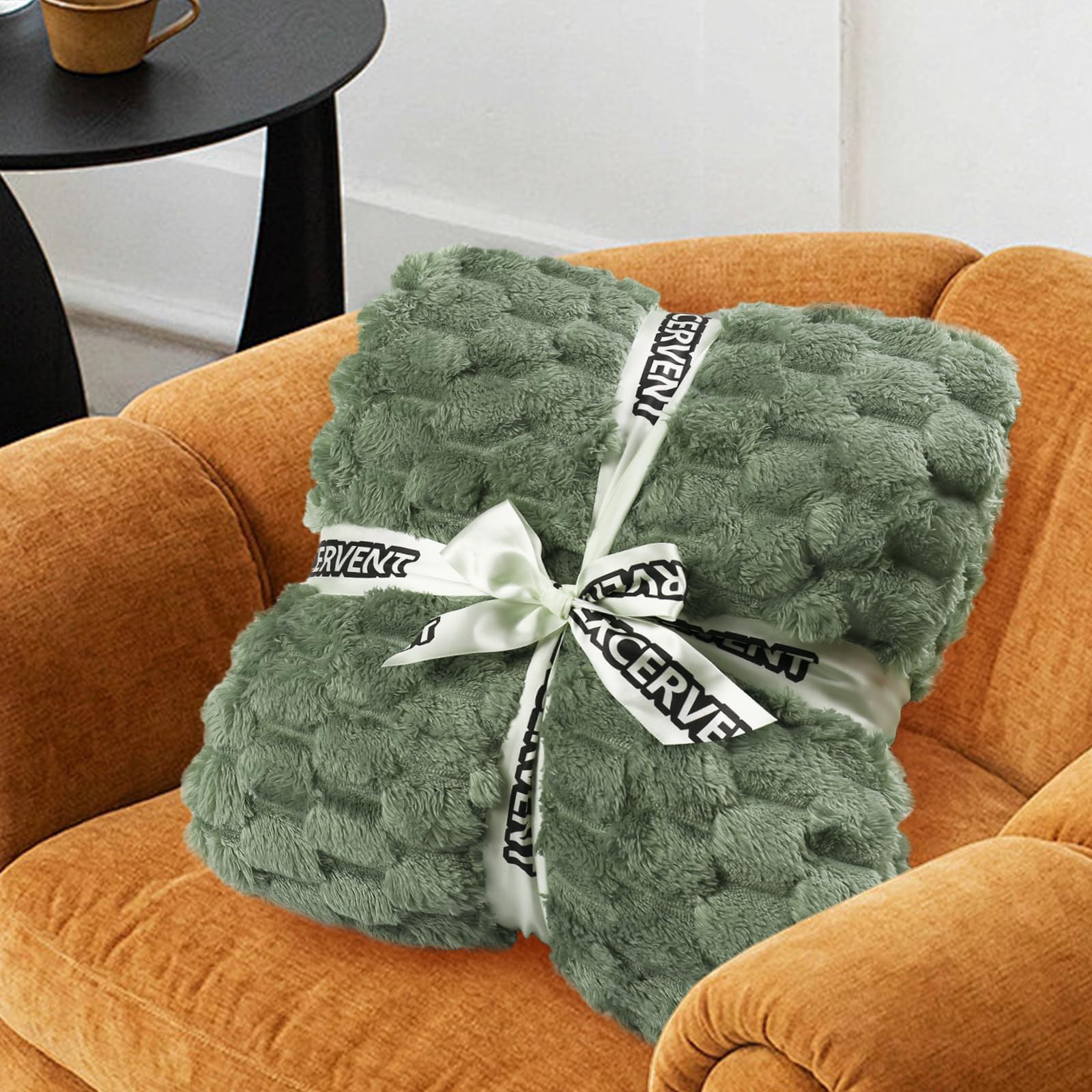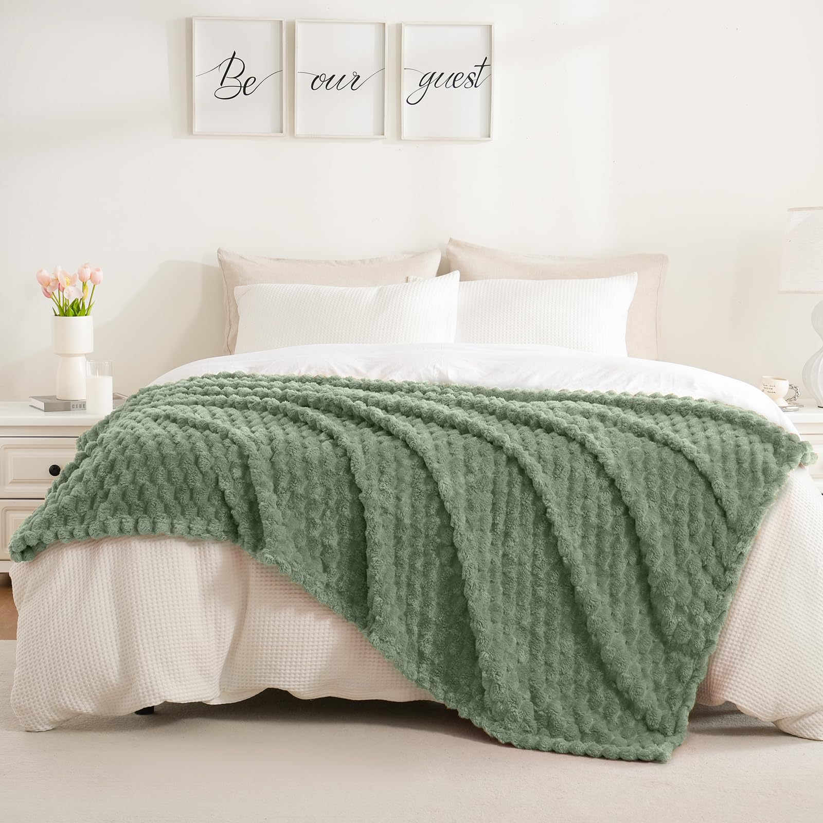 Excervent Flannel Fleece Throw Blanket(60x80 inches), Big 3D Clouds Stylish Hexagon Jacquard Decorative Fuzzy Blankets for Household, Camping, and Travel, Super Soft Cozy, Sage Green