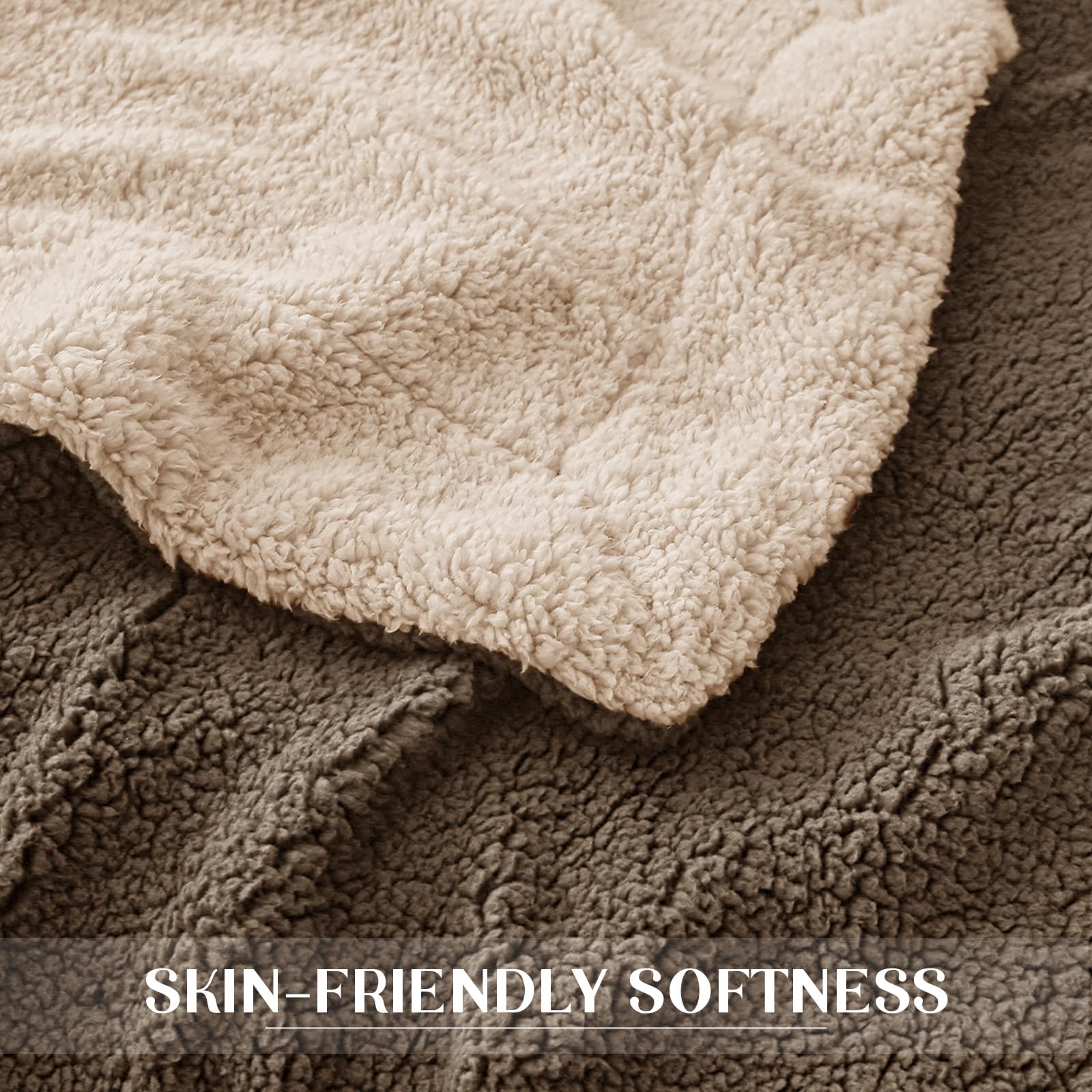 Exclusivo Mezcla Reversible Sherpa Fleece Throw Blanket for Couch, Soft Plush Blanket for Bed, Thick Warm Fluffy Blankets for Winter, 50x60 Inches, Brown/Khaki