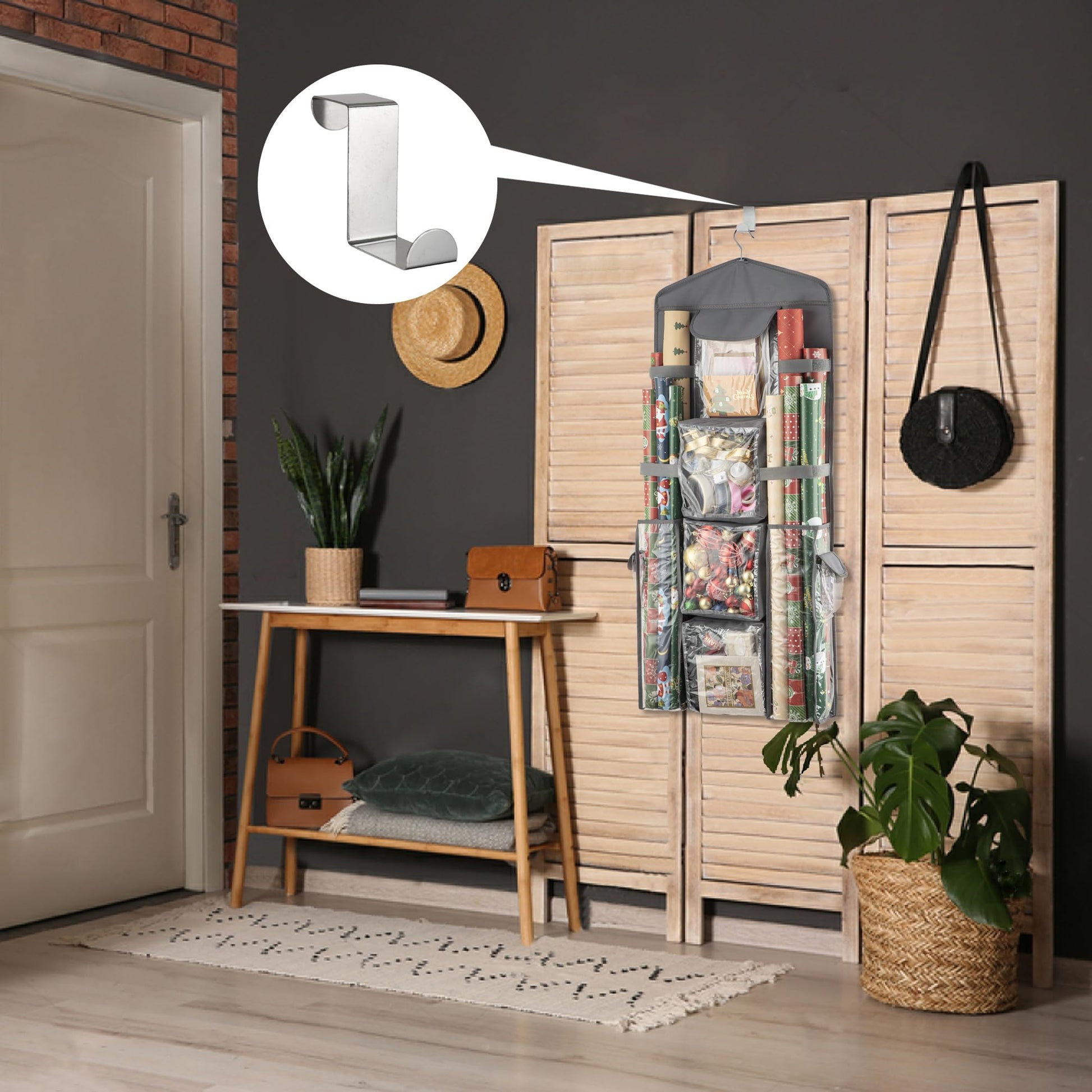 - Strong Material: Gift wrap organizer of high-quality 600D Oxford polyester fiber and thick transparent PVC, the hook has a 360-degree rotation function, easily hangs as part of your closet and takes a very small space if you are necessary to collect them.