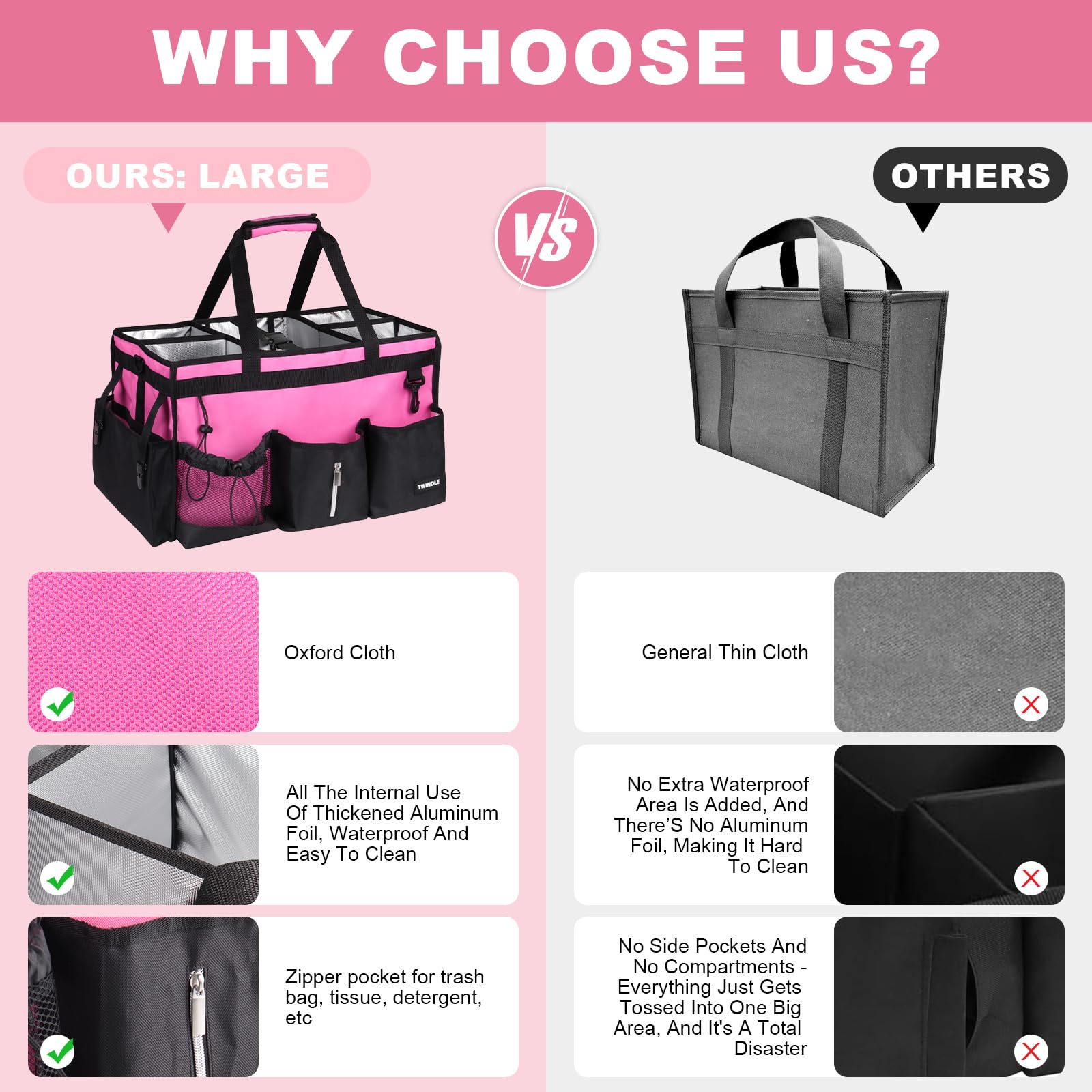 - 【This May Be The Largest Ever Cleaning caddy You Have Ever Seen】This Pink Cleaning Caddy Is The Largest Cleaning Caddy Organizer With Handle in Market, Designed To Make Your Cleaning Tasks Easier And More Efficient! The Cleaning Supply Caddy's External Dimensions Are 19.69' X 11.42' X 11.42'.The Cleaning Bag Offers Ample Storage Space And Movable Compartments, Allowing You To Tidy Up Your Cleaning Supplies And Keep Them Organized And Easily Accessible.