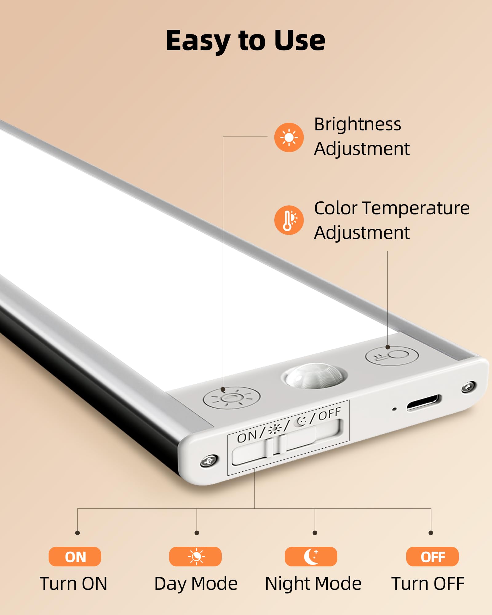 - 【3000mAh Long-Lasting Battery】—With a massive 3000mAh battery, the battery-powered cabinet lights can last 15–45 days in Auto Mode or provide up to 8 hours of continuous illumination in Always On Mode (depending on usage). They only need 4 hours to fully charge, ensuring reliable performance without frequent recharging while serving as reliable emergency lighting during power outages.