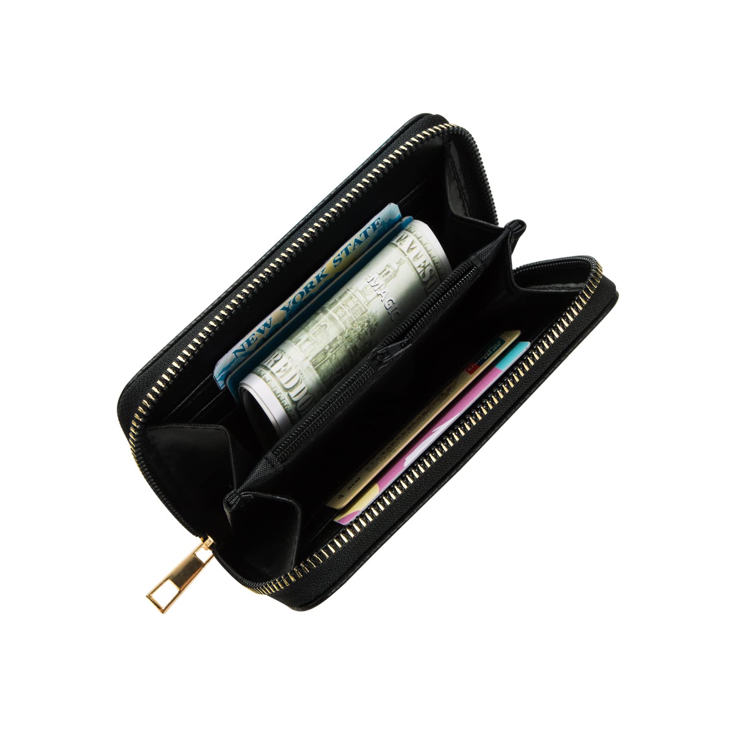 FACAI RFID Wallet Women, Small Wallet for Women, Credit Card Holder, Wristlet Wallet with ID Window Black