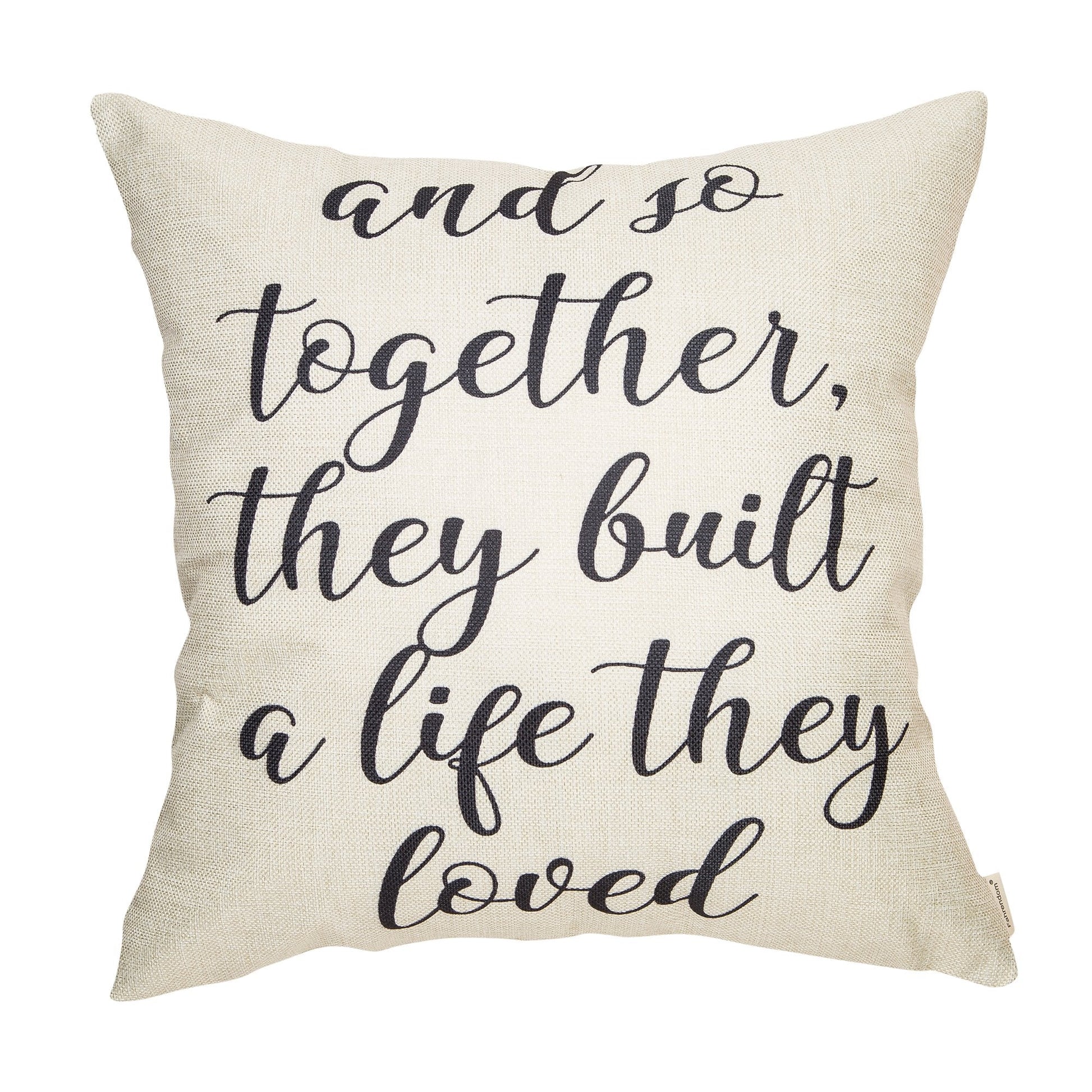Fahrendom and So Together They Built a Life They Loved Farmhouse Décor Family Decoration Sign Cotton Linen Home Decorative Throw Pillow Case Cushion Cover with Words for Sofa Couch, 18 x 18 in