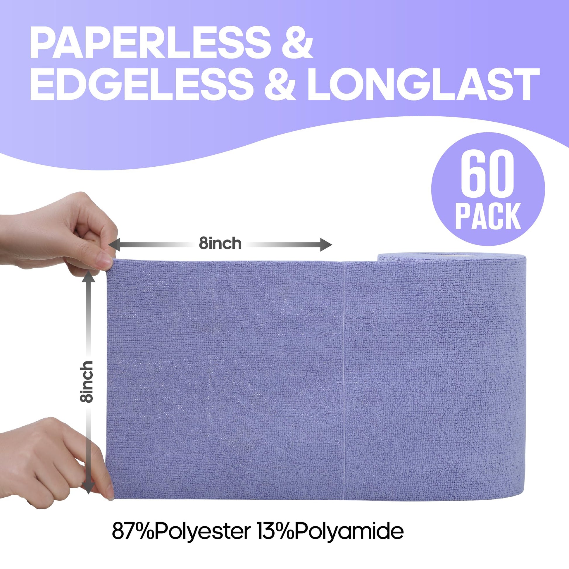 Fantasticlean Microfiber Cleaning Cloth Roll -60 Pack, Tear Away Paperless Towels, 8" x 8", Reusable Washable Rags, for Home Kitchen, Pet, Office, Indoor Outdoor, Compact and Portable (Light-Purple)