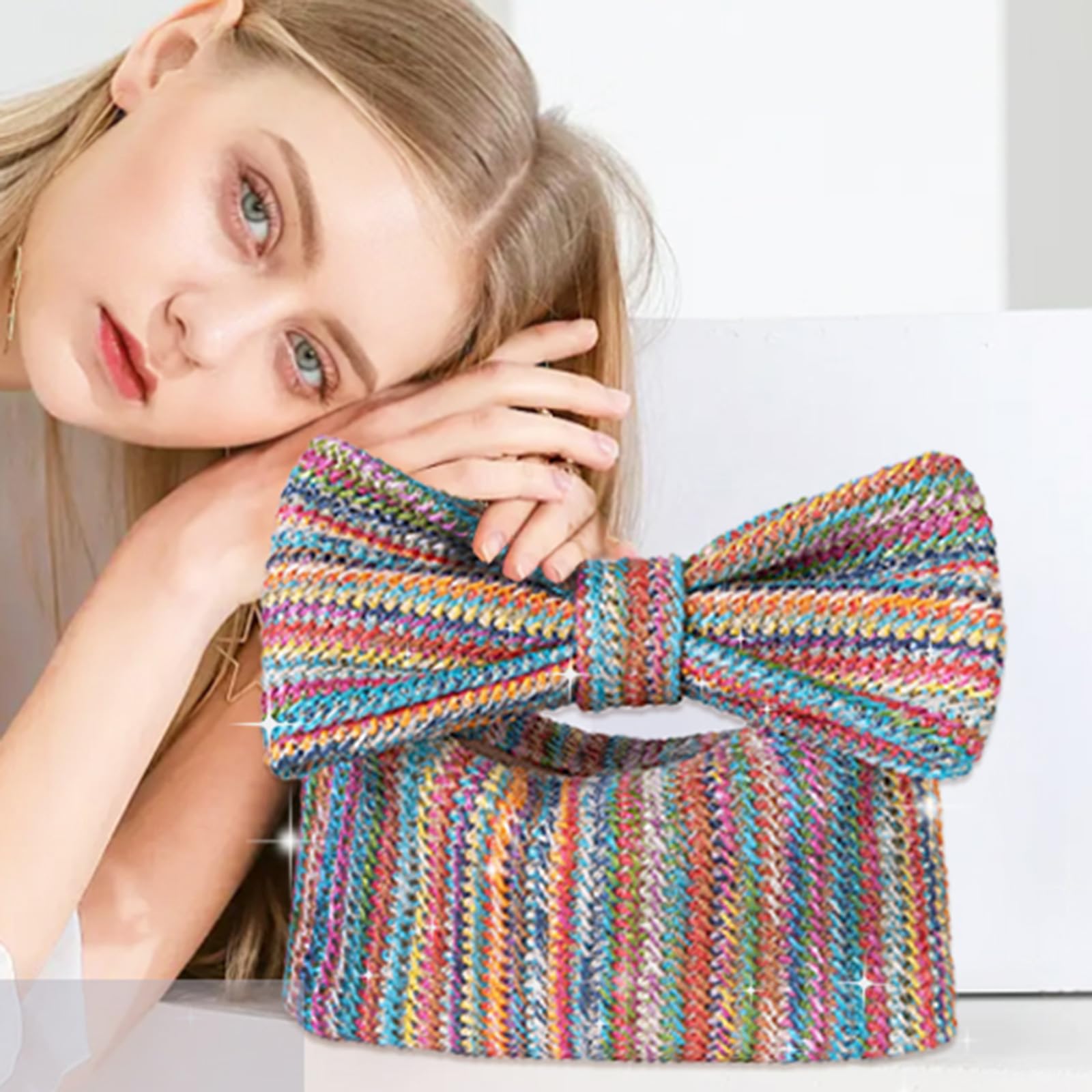 FantasyBear Small Straw Cluth for women,Trendy Cute Summer Woven With Bow Women Purse Handbag Wallet For Beach Vacation Party (Multicolour)