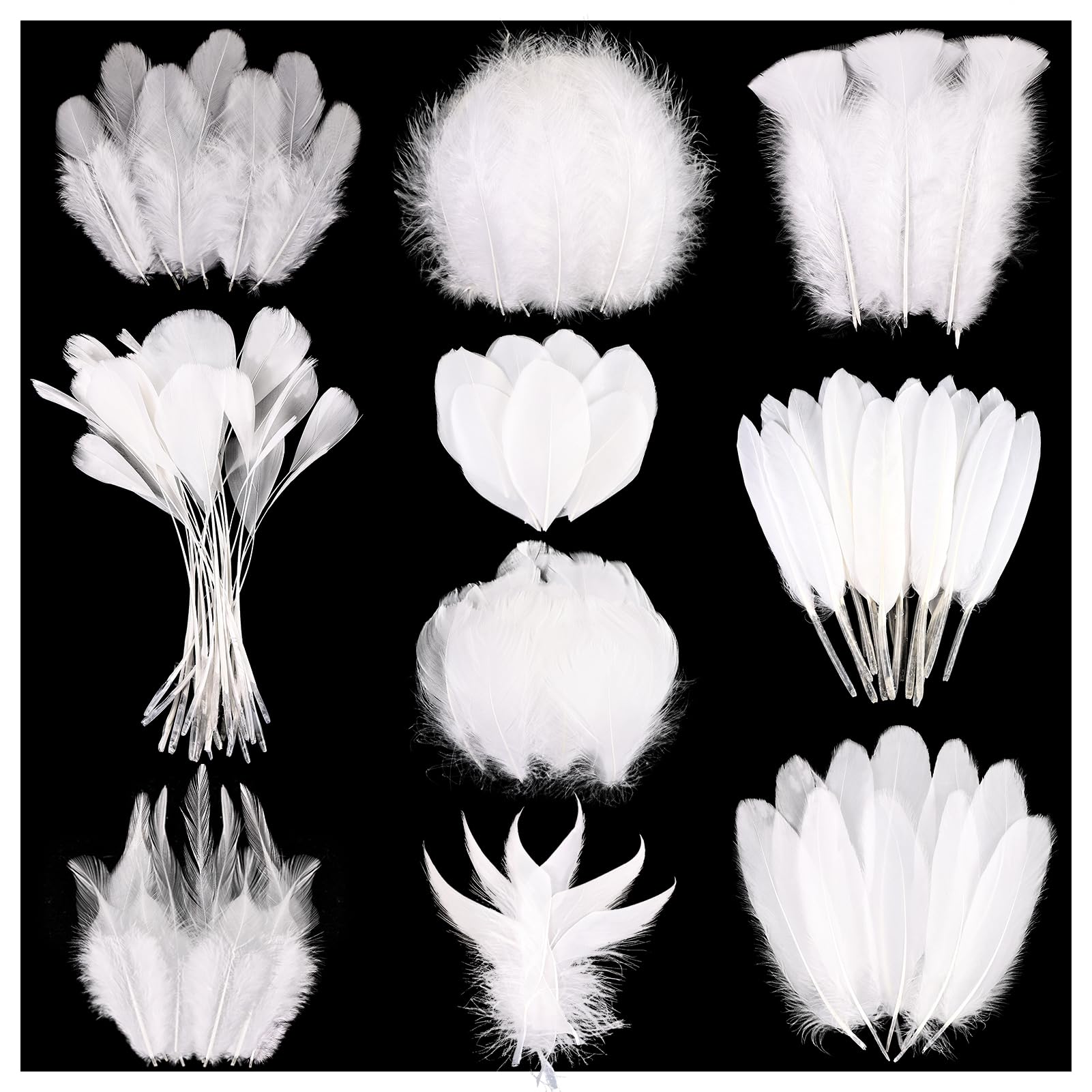 Value Package:A pack of 300pcs natural black craft feathers in 10 unique styles, 30pcs per style with individually packaged.Goose feather, duck feather,chicken feather, turkey feather, satisfy your va