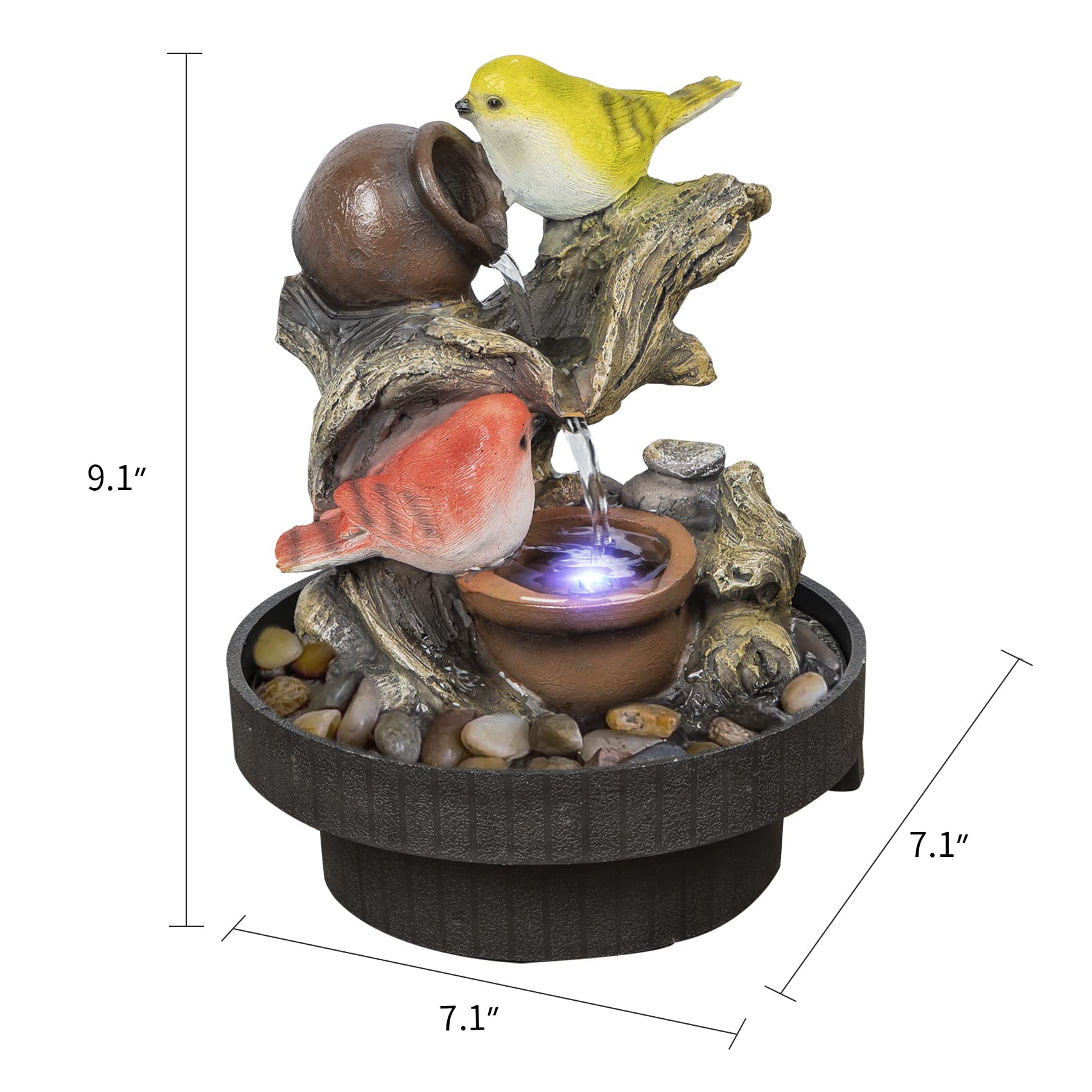 - LIGHTS UP THE MOOD: This 3-tier relaxing table top birds fountain decoration has a subtle LED illuminated lighting effect that is really pleasing to the eye and that’s sure to improve your comfort.