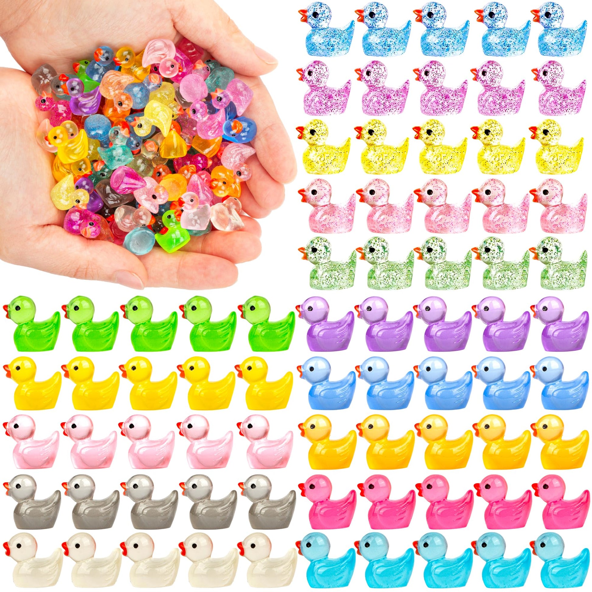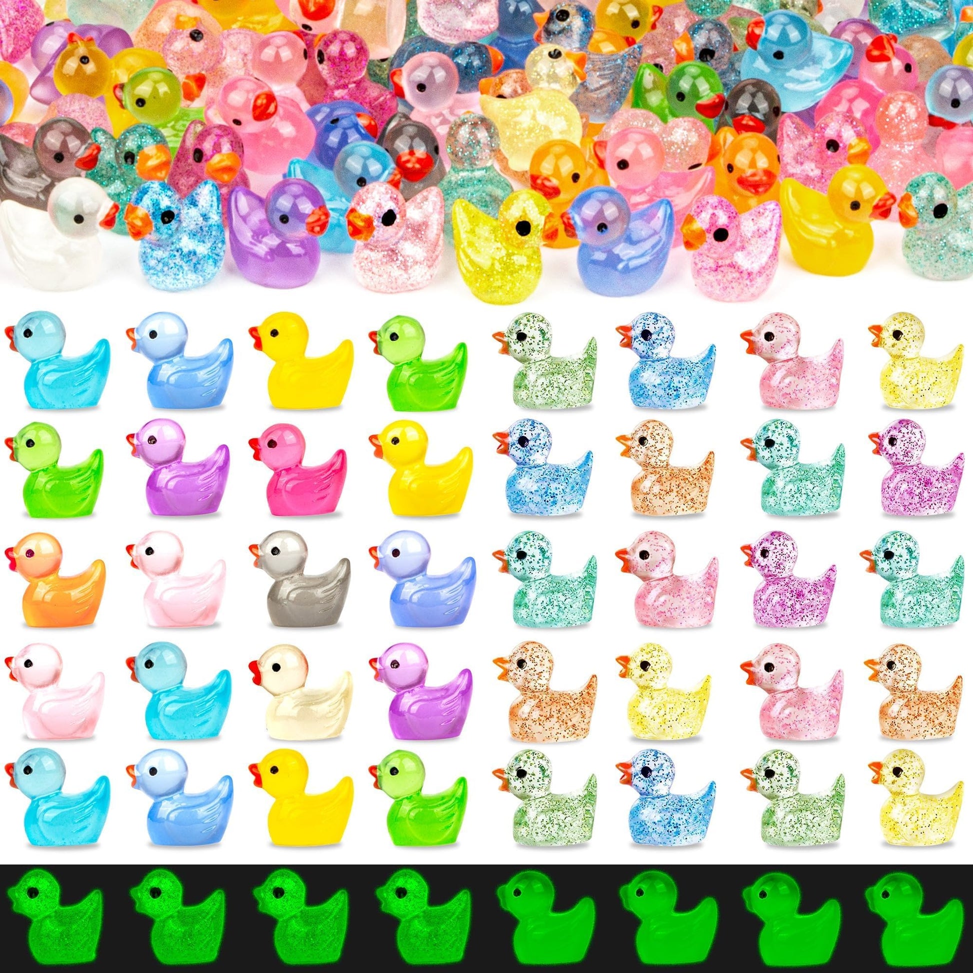 FEXIA 100pcs Mini Ducks Glitter Resin Ducks Mini Resin Animals Figures to Hide Glow in The Dark Tiny Duck Figures for Dollhouse Aquarium Fairy Garden Decor