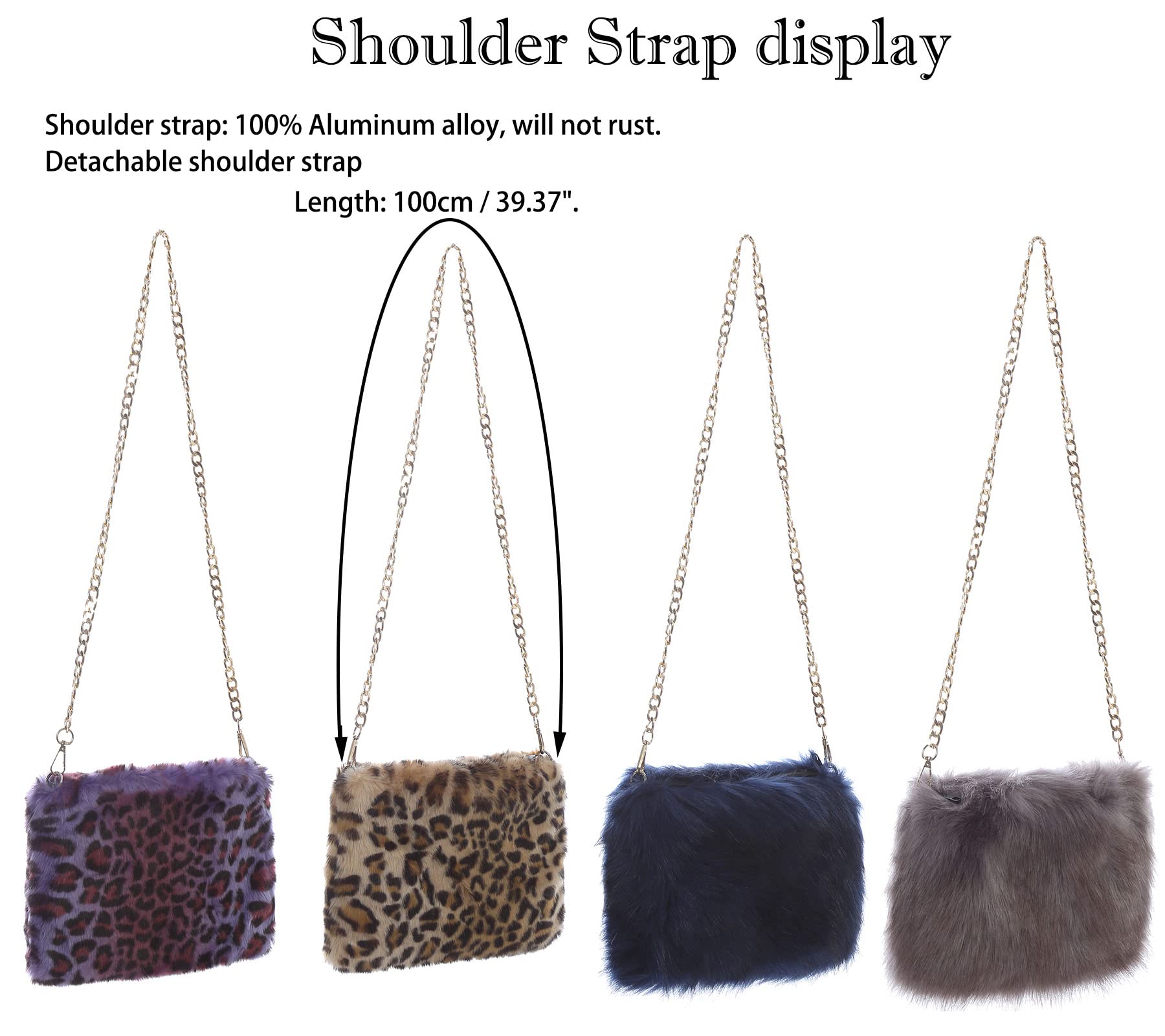 Shoulder strap: Aluminum alloy, will not rust. (Chain Strap Length: 100cm / 39.37')