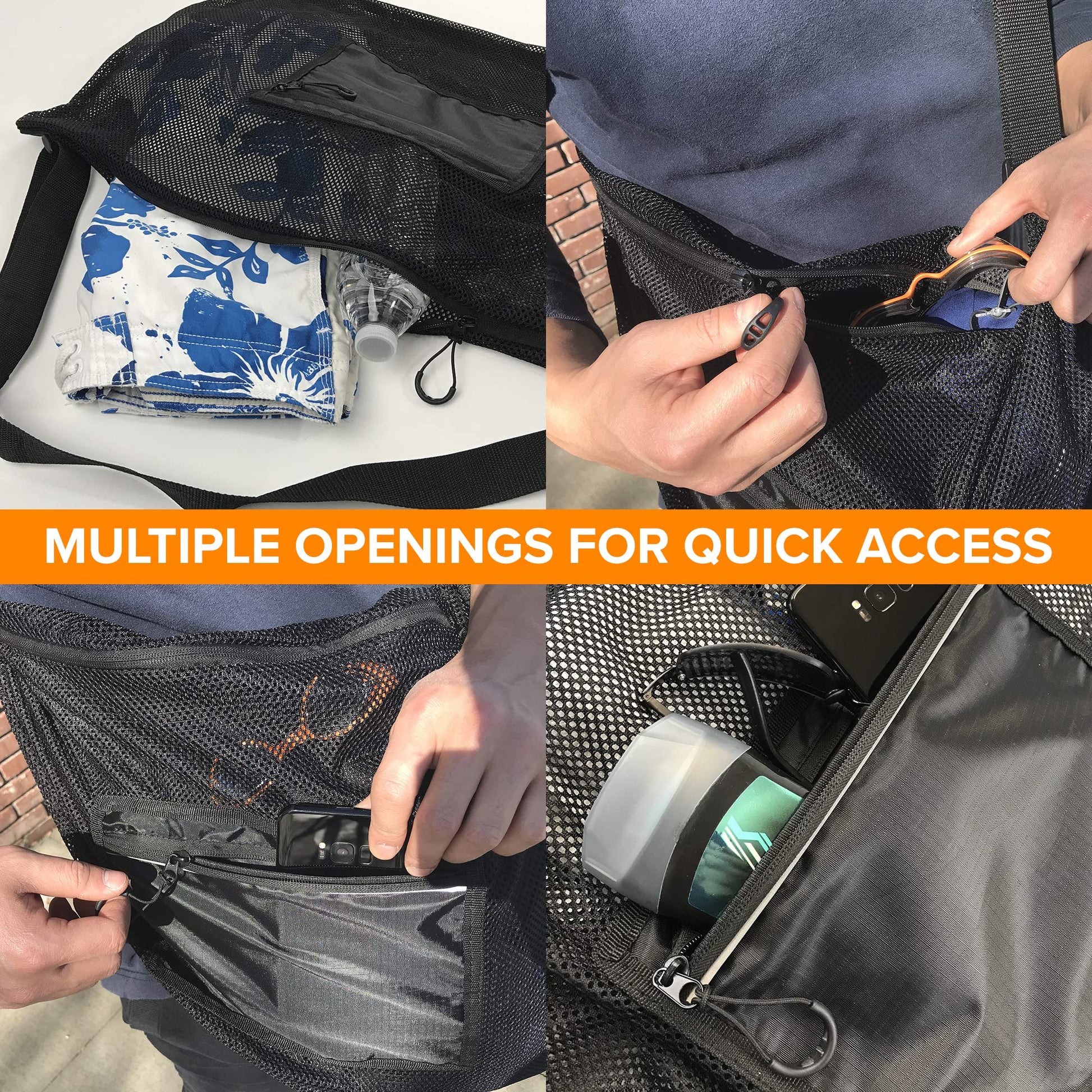 - DELIVERS! - Our bag comes with a large mesh compartment and small water resistant pocket. They keep your gadget from getting wet while drying your wet gears. It is perfect for water sport as you can keep your wet and dry items in one bag.