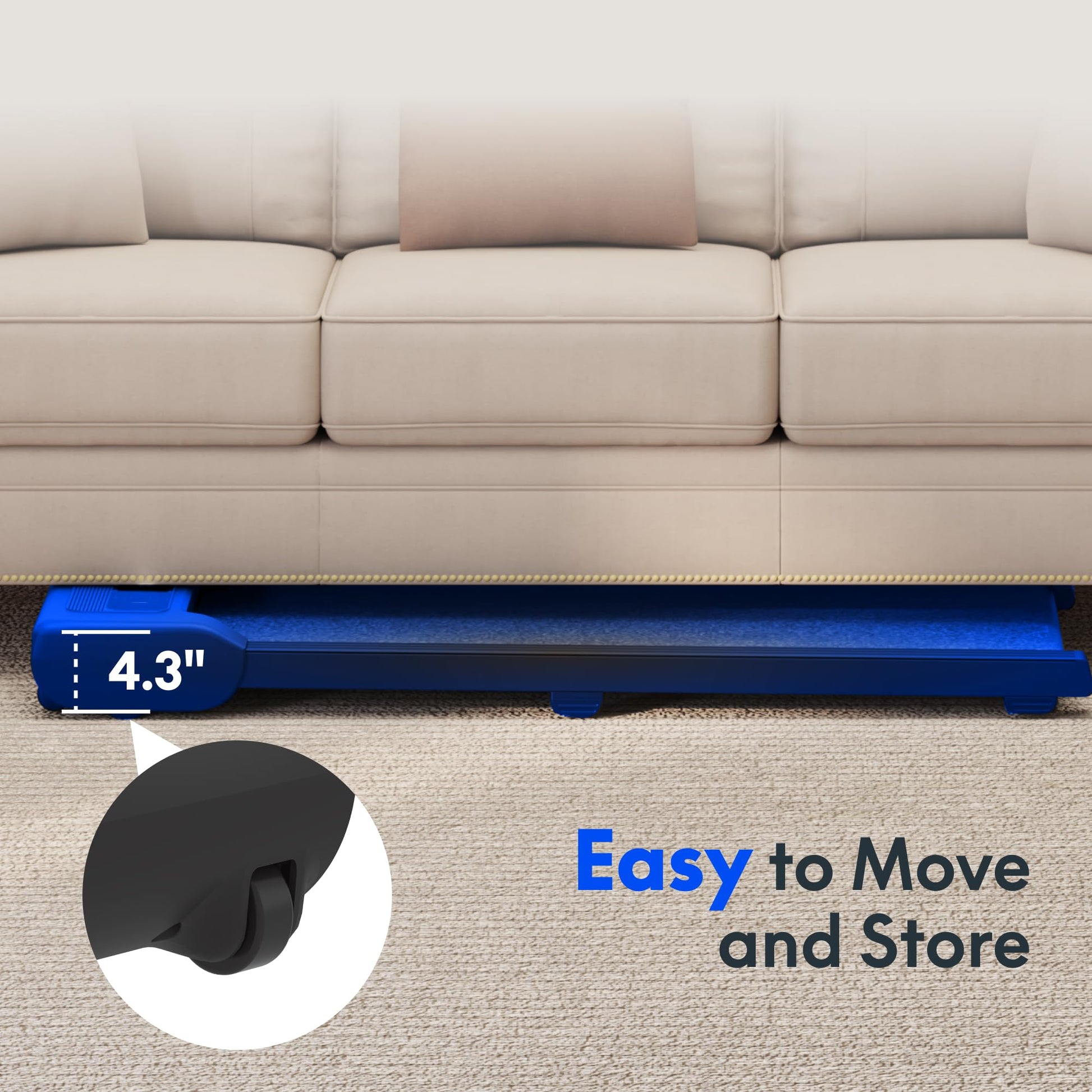 - COMPACT AND EASY TO MOVE: Designed for small spaces and easy storage, this treadmill includes built-in wheels and only measures 46.2' x 20.5'. Move it easily between rooms or slide it under your desk.