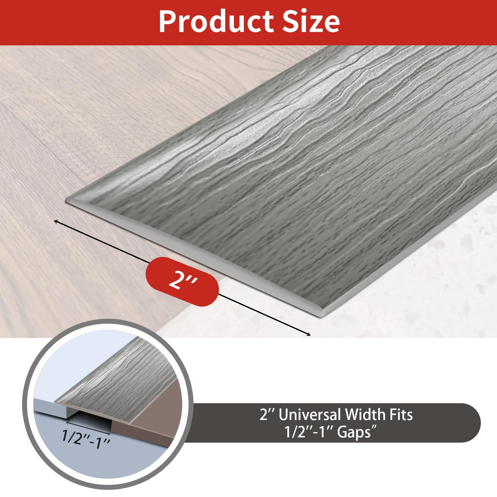 Floor Transition Strip Self Adhesive 2 Inch Wide, 6.6 FT Non-Slip Waterproof Floor Cover Strips for Floor Gaps Tiles Carpet Threshold Transition, Easy Install (Gray Wood Grain)