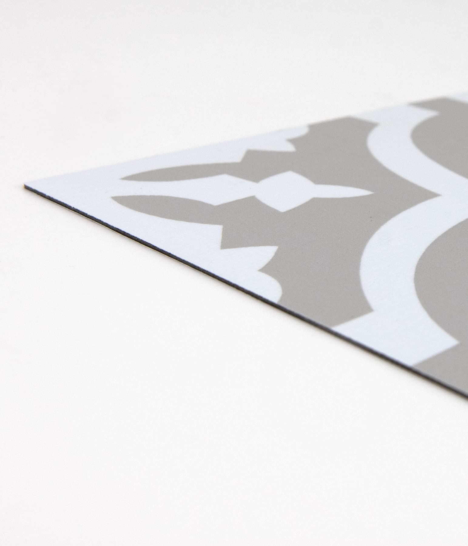 - Virgin Vinyl material with a textured low lustre finish and permanent adhesive makes tiles durable