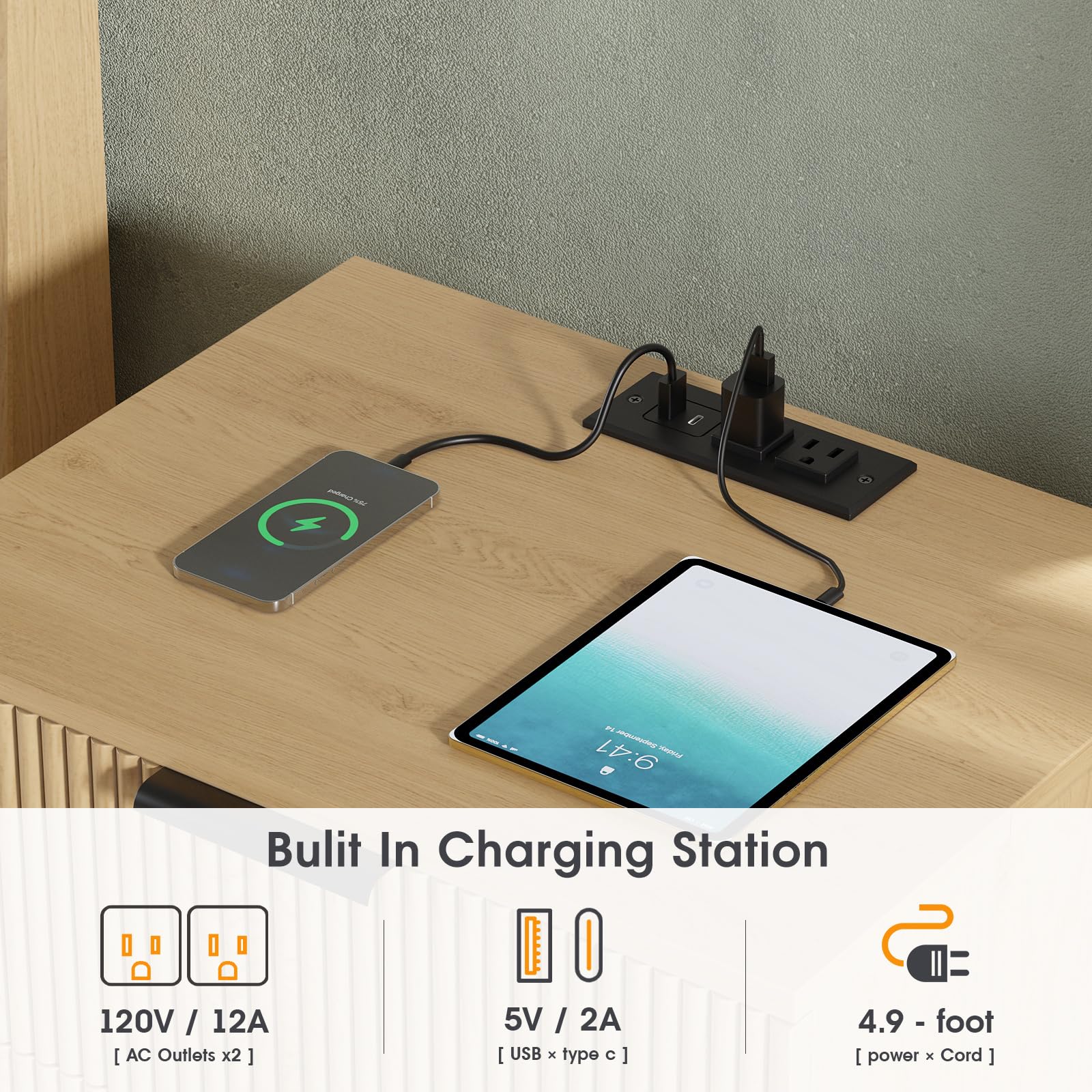 - 【Ample Storage with Charging Station】This night stand measures 19.69'W × 18'D × 24'H and features 2 drawers and a spacious tabletop for display and storage. The 20' wide tabletop includes a plug-in charging station with 2 power ports, a type-C and a USB port. Whether you're using lamps, or charging phones or other smart devices, this bedside table offers both convenience and practicality for your daily life.