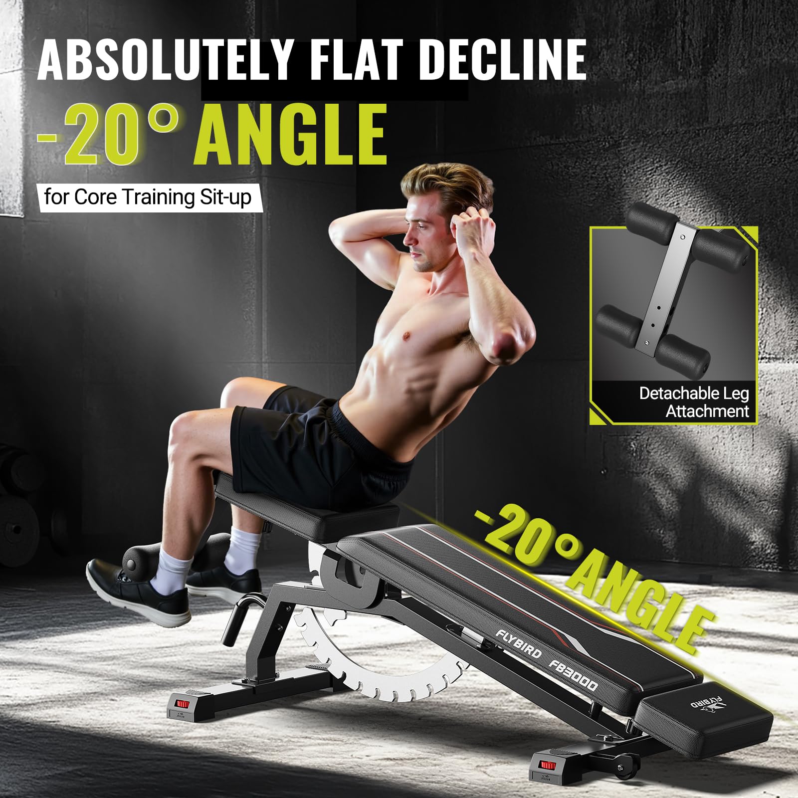 - 15 Refined Adjustable Angles: Flybird workout bench offers versatility with 12 back angles and 3 seat angles; Ensuring whole body muscles are worked; Whether it's incline presses or decline training, this exercise bench can adapt to your fitness needs