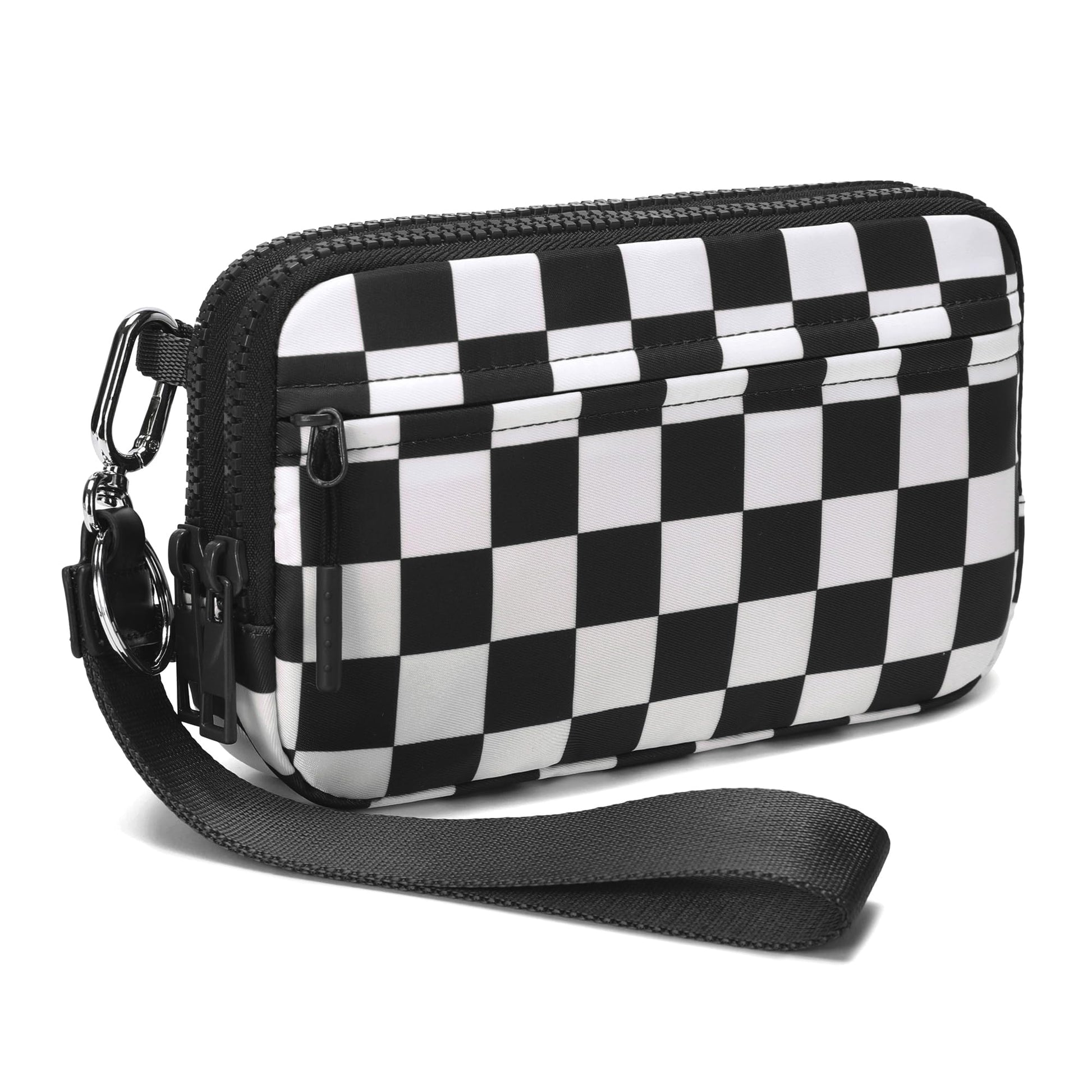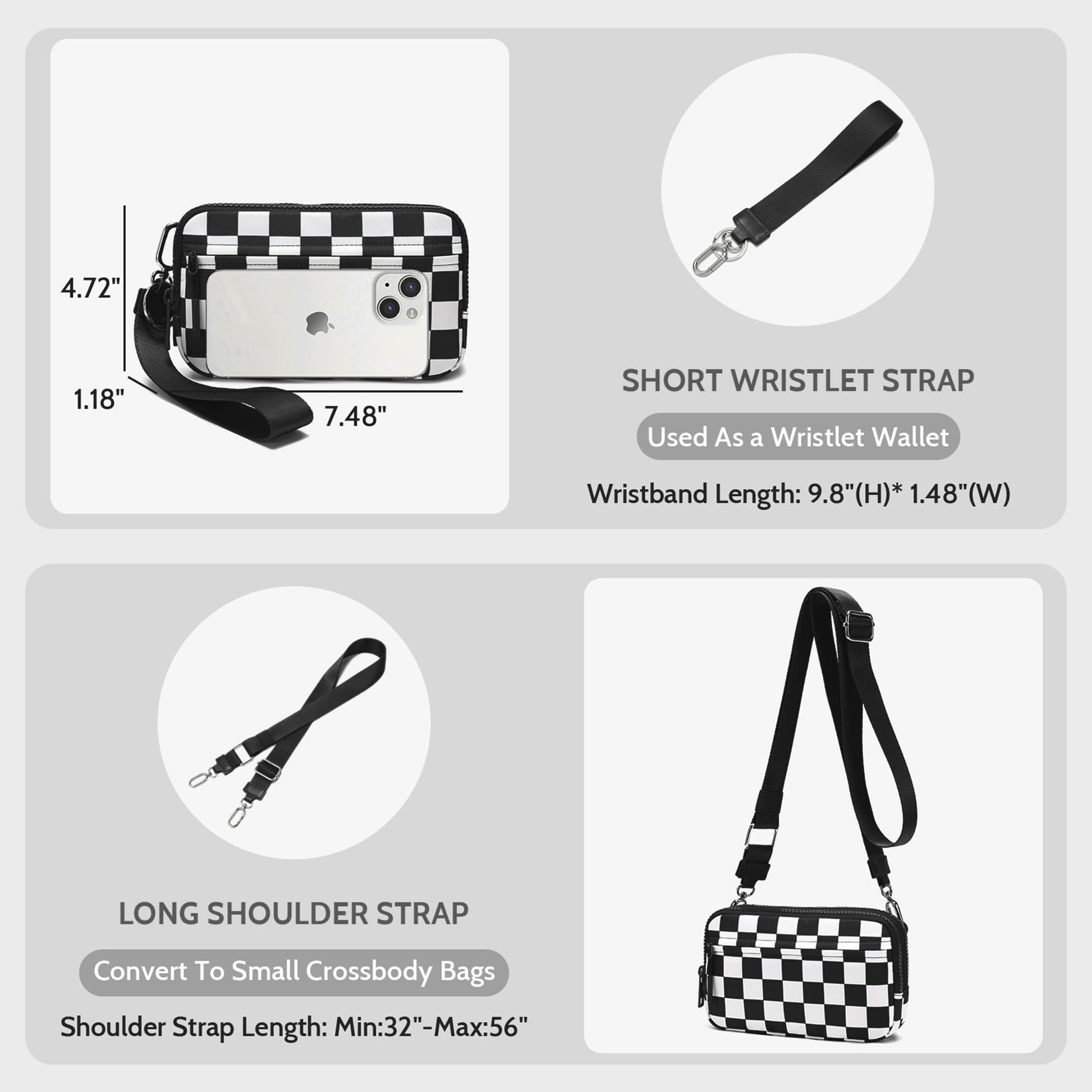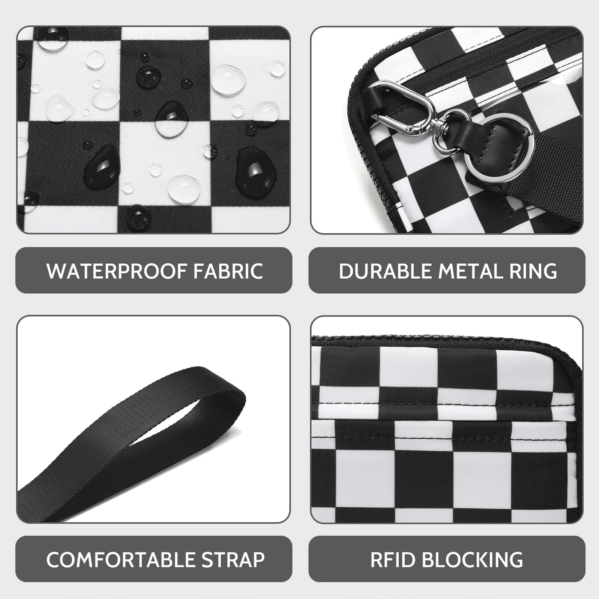 FODOKO Wristlet wallets for women Nylon Quilted Wallet with 4 Zippers,Travel Credit Card,Holder Cell Phone Organizer,coin purse (Black)
