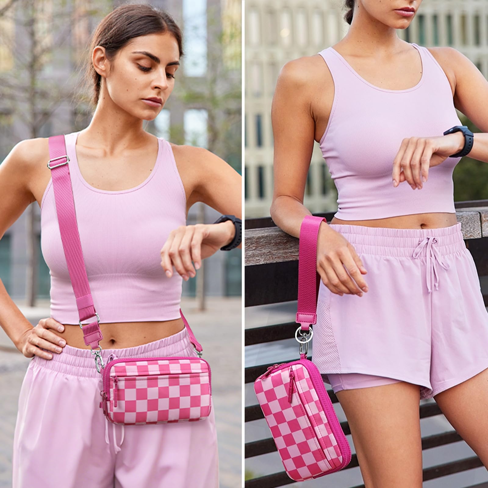 - 'Trend-Adaptive Color Palette 10 on-trend shades from timeless black to 2025 travel must-have vibrant color are paired with Checkered Design to elevate casual looks to party glamour. Strap adjusters fit small to large frames'