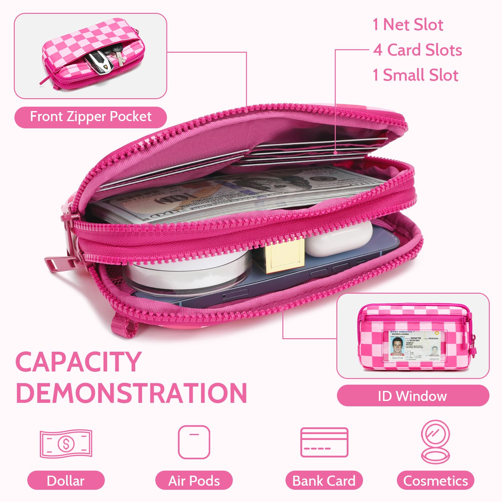 - 'Smart Organizational Compartments 6 dedicated card slots + zippered coin pocket + spacious main compartment prevent chaos. Securely carry cash, coins, AirPods, lipstick without bulk – perfect minimalist wallet replacement'