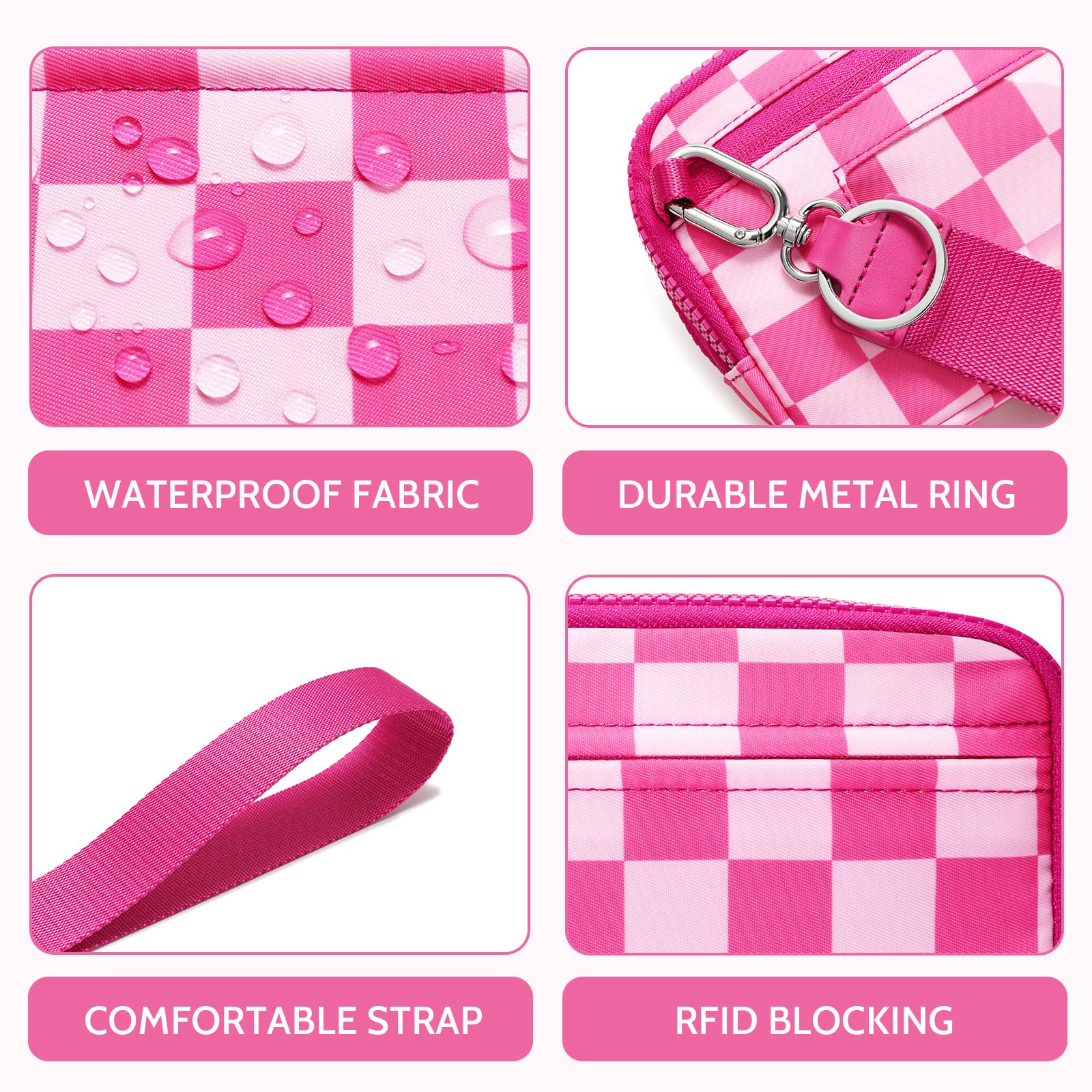 FODOKO Wristlet wallets for women Nylon Quilted Wallet with 4 Zippers,Travel Credit Card,Holder Cell Phone Organizer,coin purse (rose red)
