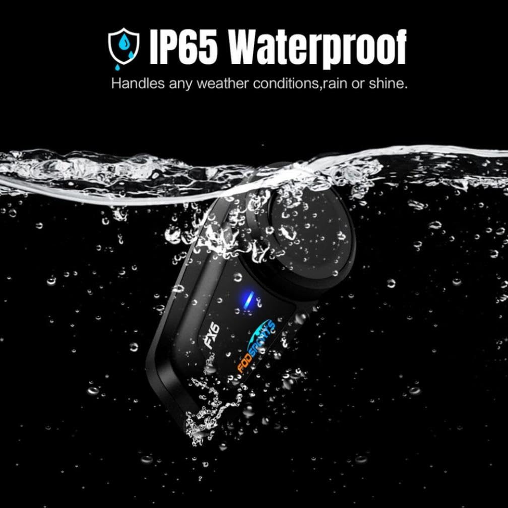 - [ Widely Use Helmet Bluetooth Headset] Consider rain or wet weather, this waterproof Bluetooth motorcycle communication headset is what you want. Use this for ATV riding or long road trip, help you keep in contact with slower rider, informing upcoming dangerous situation. Universal feature allow you to connect with other brands Bluetooth motorcycle intercom.【After-Sale】Any problem with FX6 motorcycle intercom system, please click 'LIVECONN' → ASK A QUESTION, we'll reply to you in 12 HOURS.