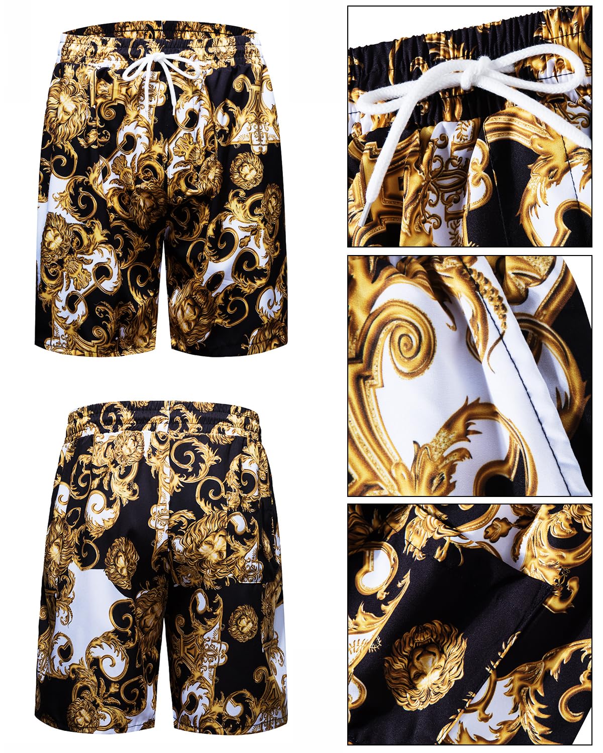 • Printed Design: 2 Piece Shirt And Shorts is All Over Print with Black Gold Chains, Retro Luxury Baroque Fashion Pattern, Hipster, Hip Hop, Casual Style, Retro, Not Easy To Be Out of Date.