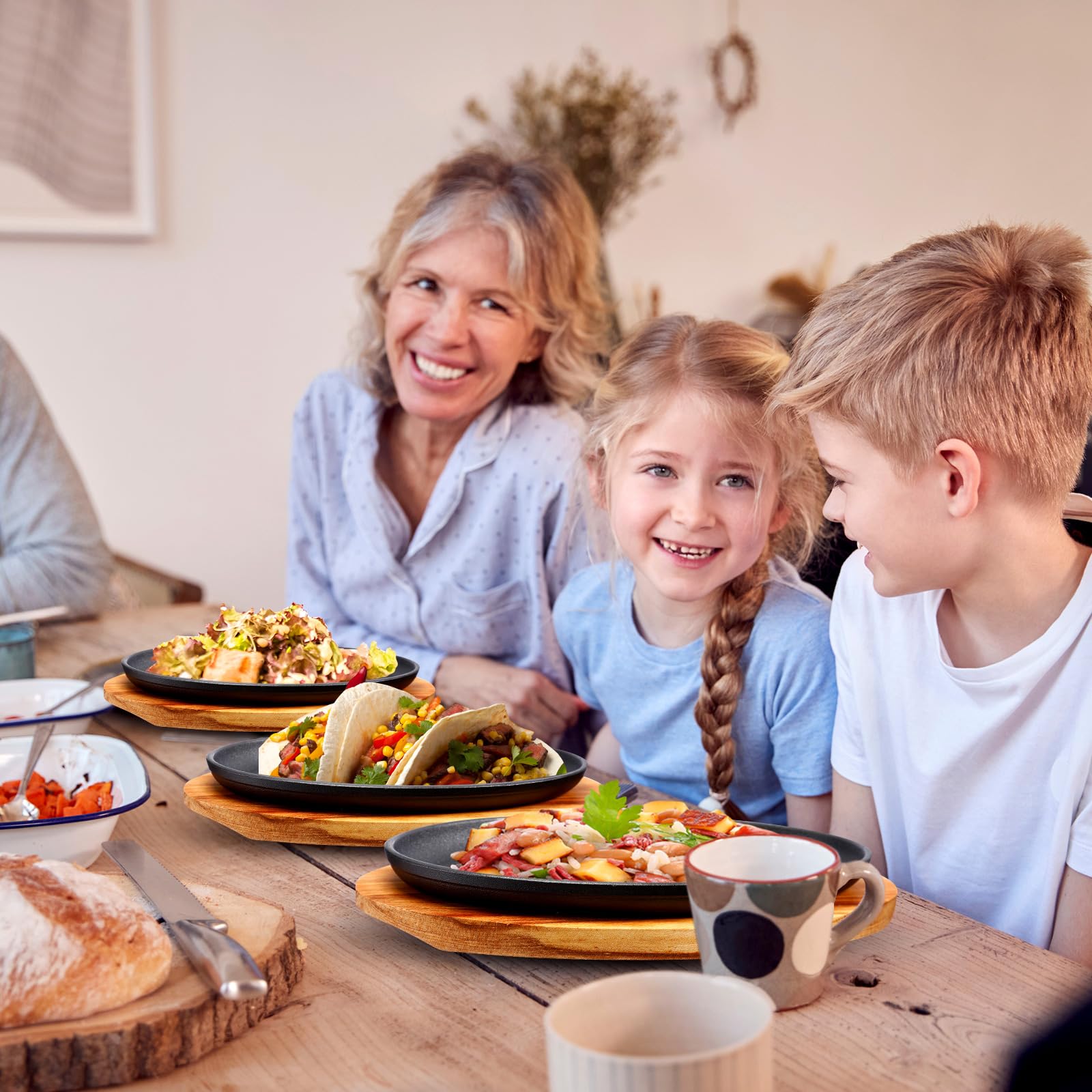 - Complete Package and Gifting Set: this fajita cooking set includes 12 cast iron sizzling plates, 12 wooden bases, and 12 anti scald protection handles; The combination not only caters to your culinary needs, but makes an ideal gifting set for family members, friends, or any cooking enthusiast in your life