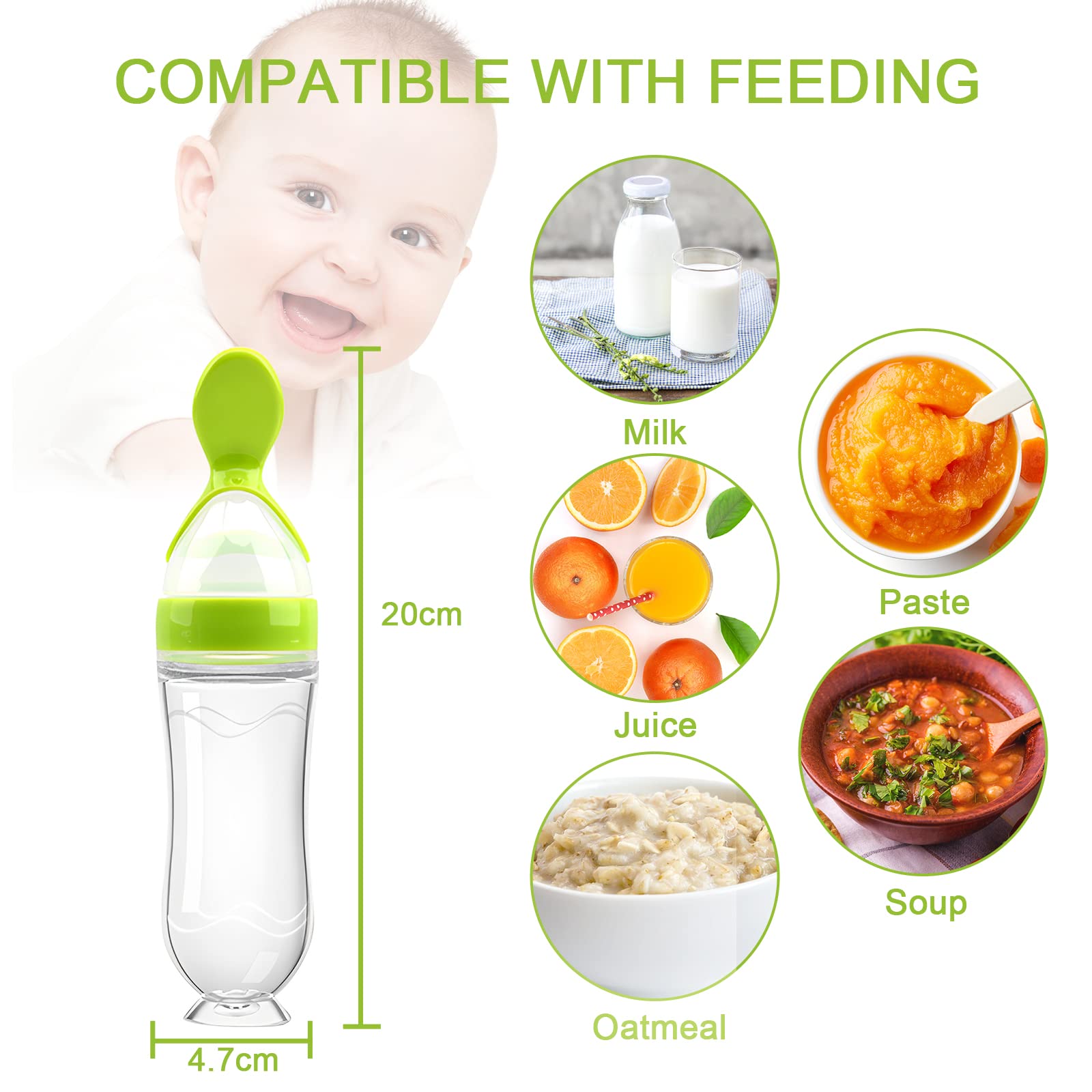 - 90 ML SQUIRT SILICONE BABY FOOD DISPENSING SPOON(1 pcs)--Dispenses baby food one bite at a time for convenient one-handed feeding. Dispensing spoon takes baby food, removes the jar and the mess, packs it into a single utensil and with one squeeze.