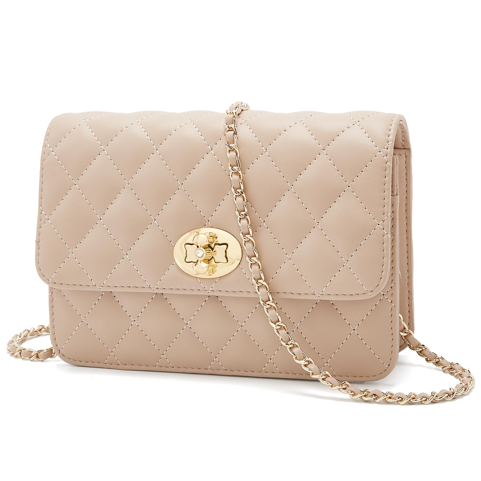 FOXLOVER Quilted Crossbody Purse for Women Faux Leather Trendy Ladies Shoulder Bag with Chain