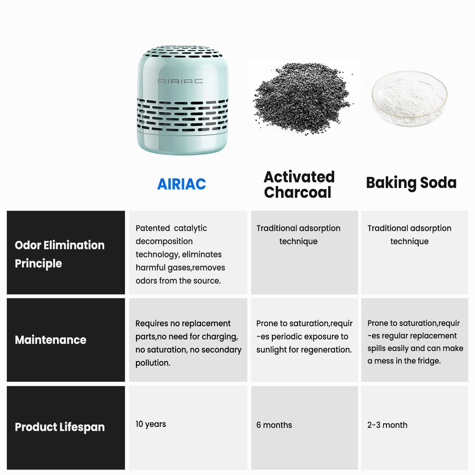 - PORTABLE & VERSATILE KITCHEN GADGET: Our compact and lightweight refrigerator odor eliminator is designed for convenience at home or during travel. It works wonders in various smelly places such as fridges, cars, wardrobe drawers, shoe cabinets, gym bags, and more small spaces.