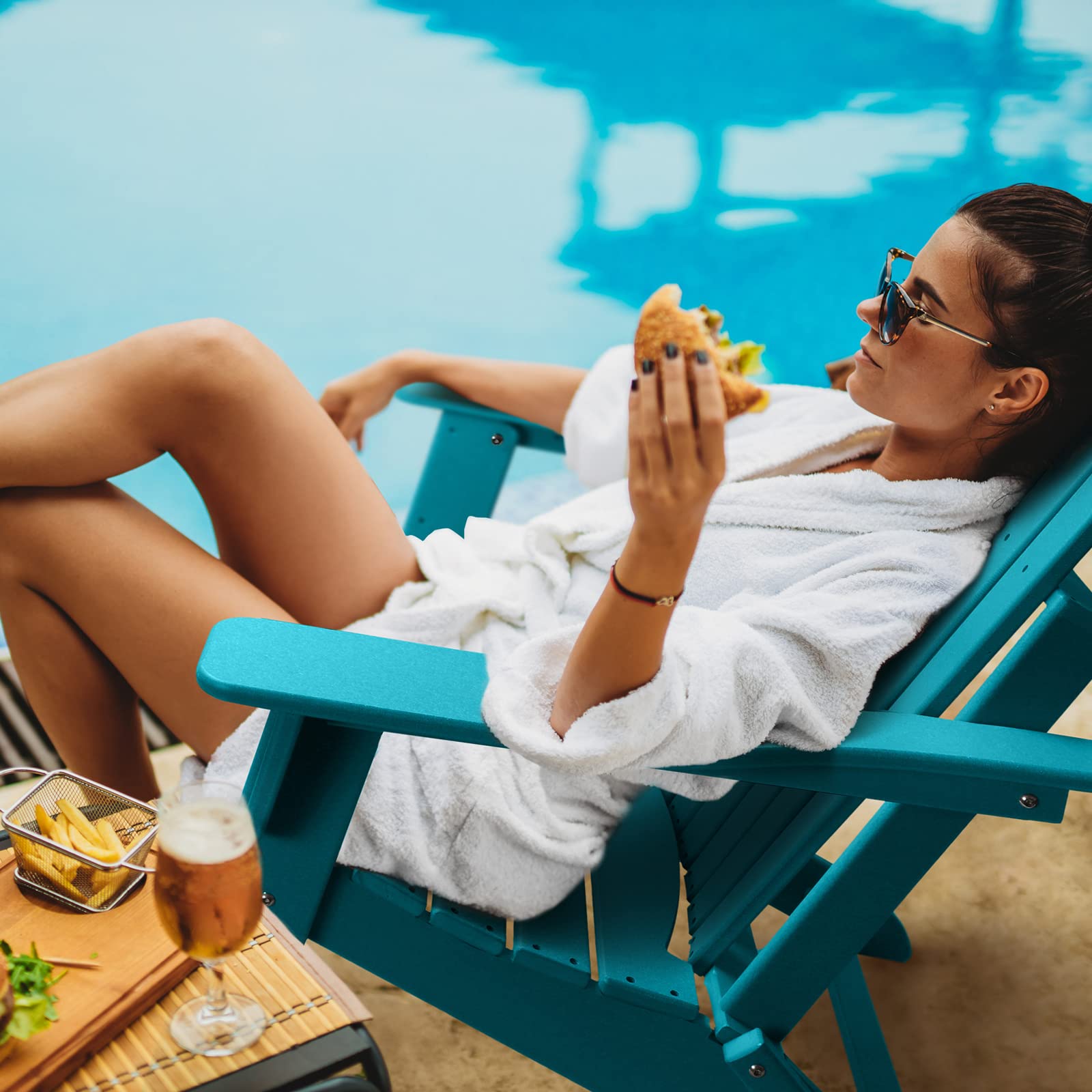 - 【Water and Heat Resistant Material】-The material of this adirondack chair is excellent, it's waterproof and heat resistant, so you can keep it outdoor in all kinds of weather including hot sun, heavy snow, torrential rain, salt spray, and strong coastal winds. HDPE is also a tough material that can hold up to 400 pounds.