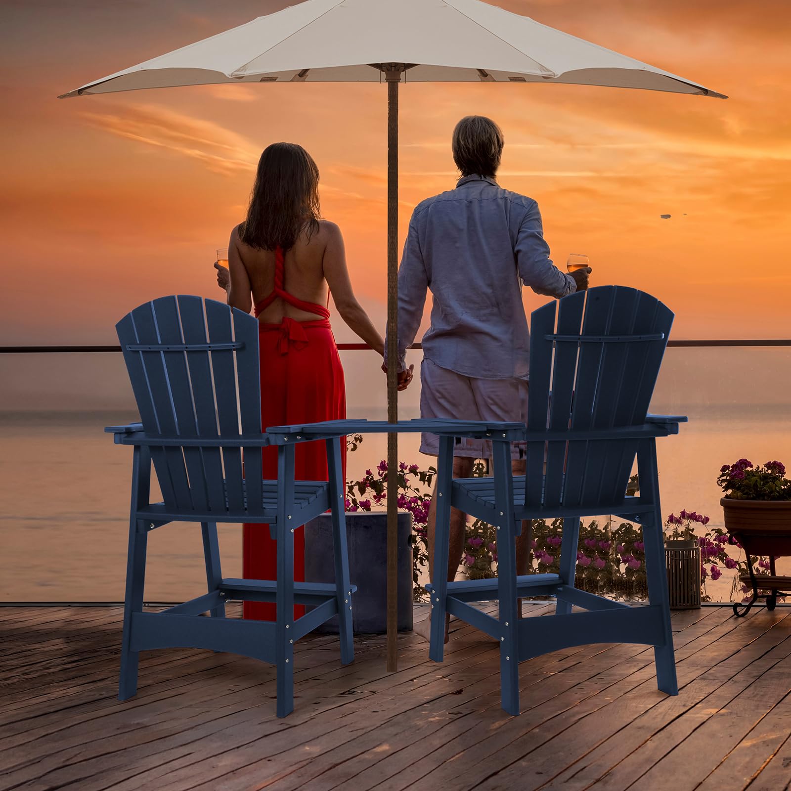 FUNBERRY Tall Adirondack Chair, All Weather High Top Balcony Chairs with Cup Holder